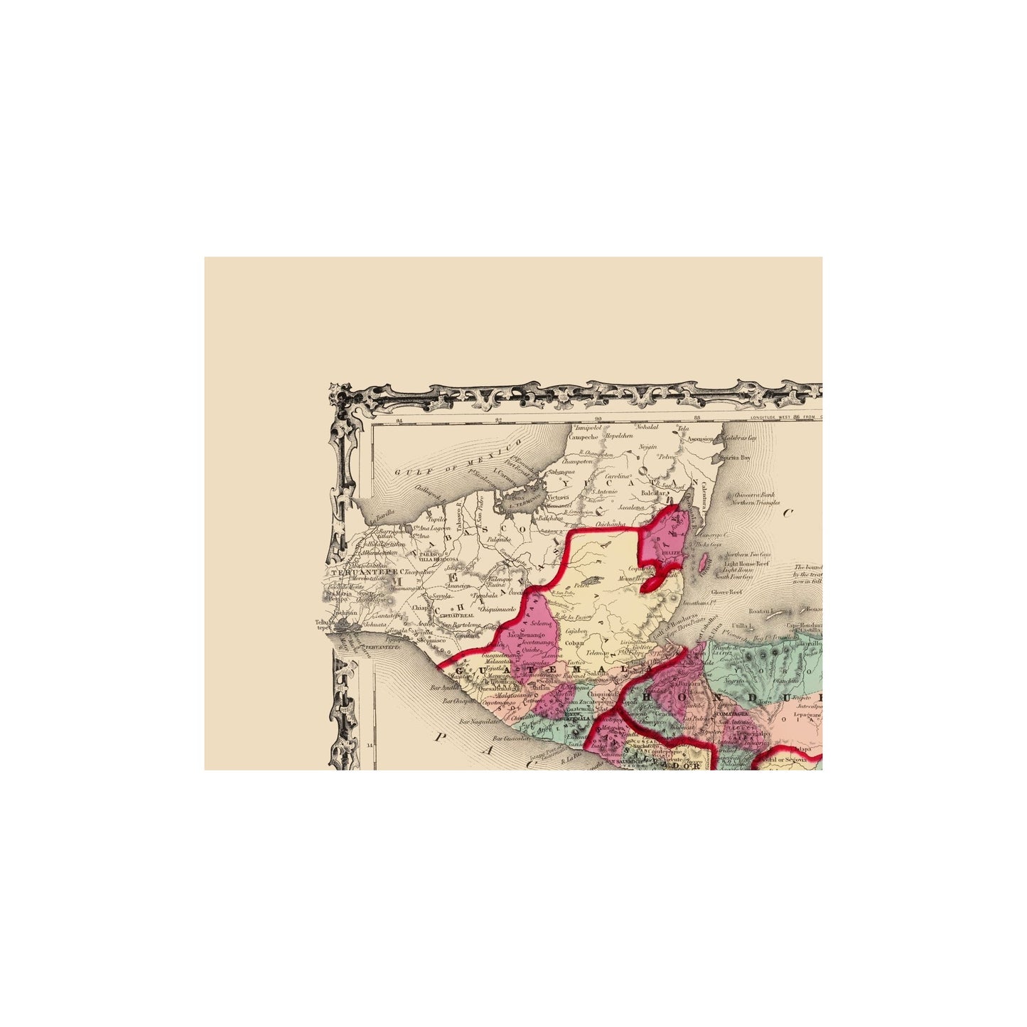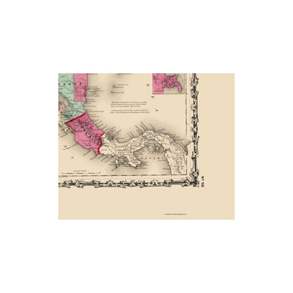 Old Central America Map - Johnson 1860 - This is an exquisite full-color Reproduction printed on high-quality gloss paper, art paper or canvas.