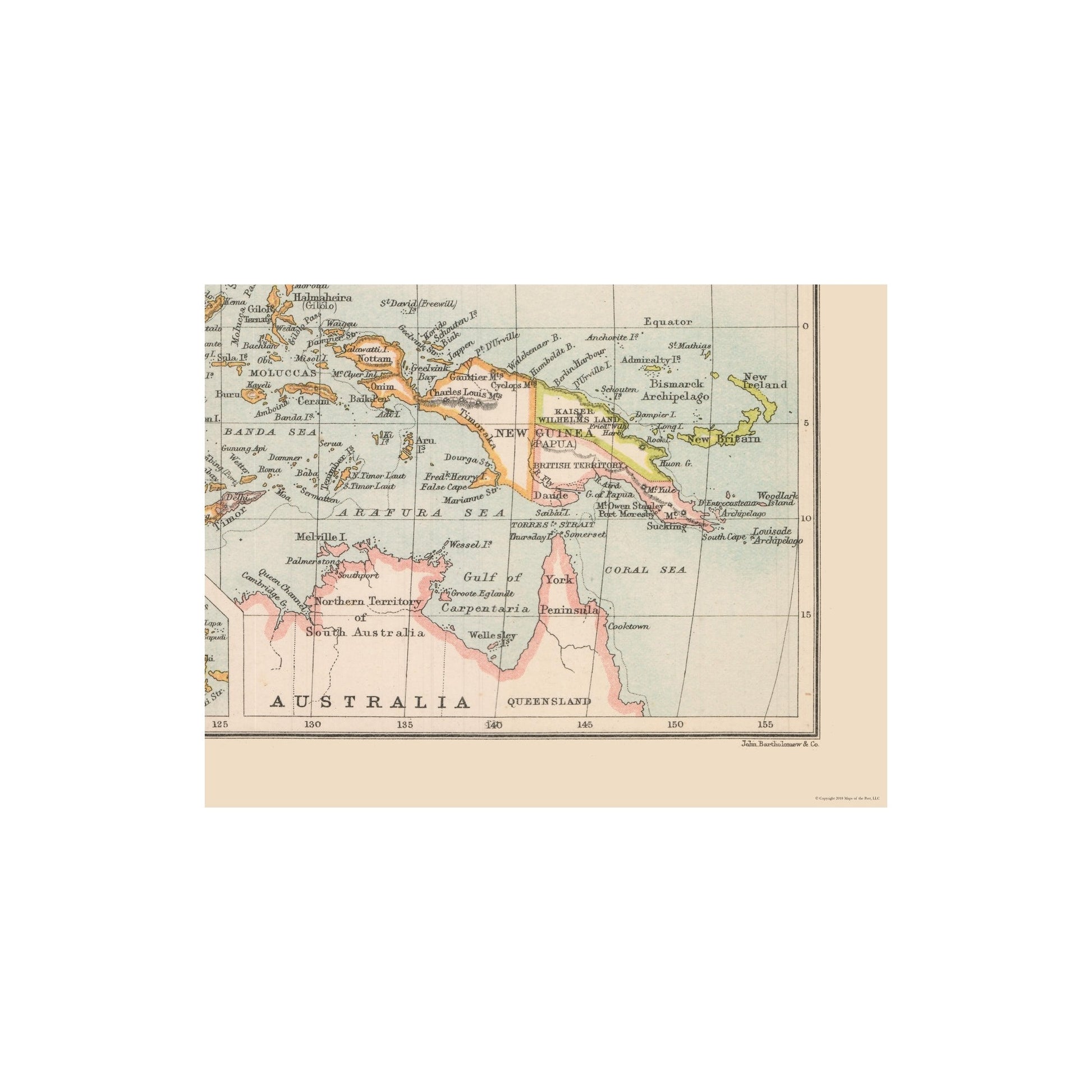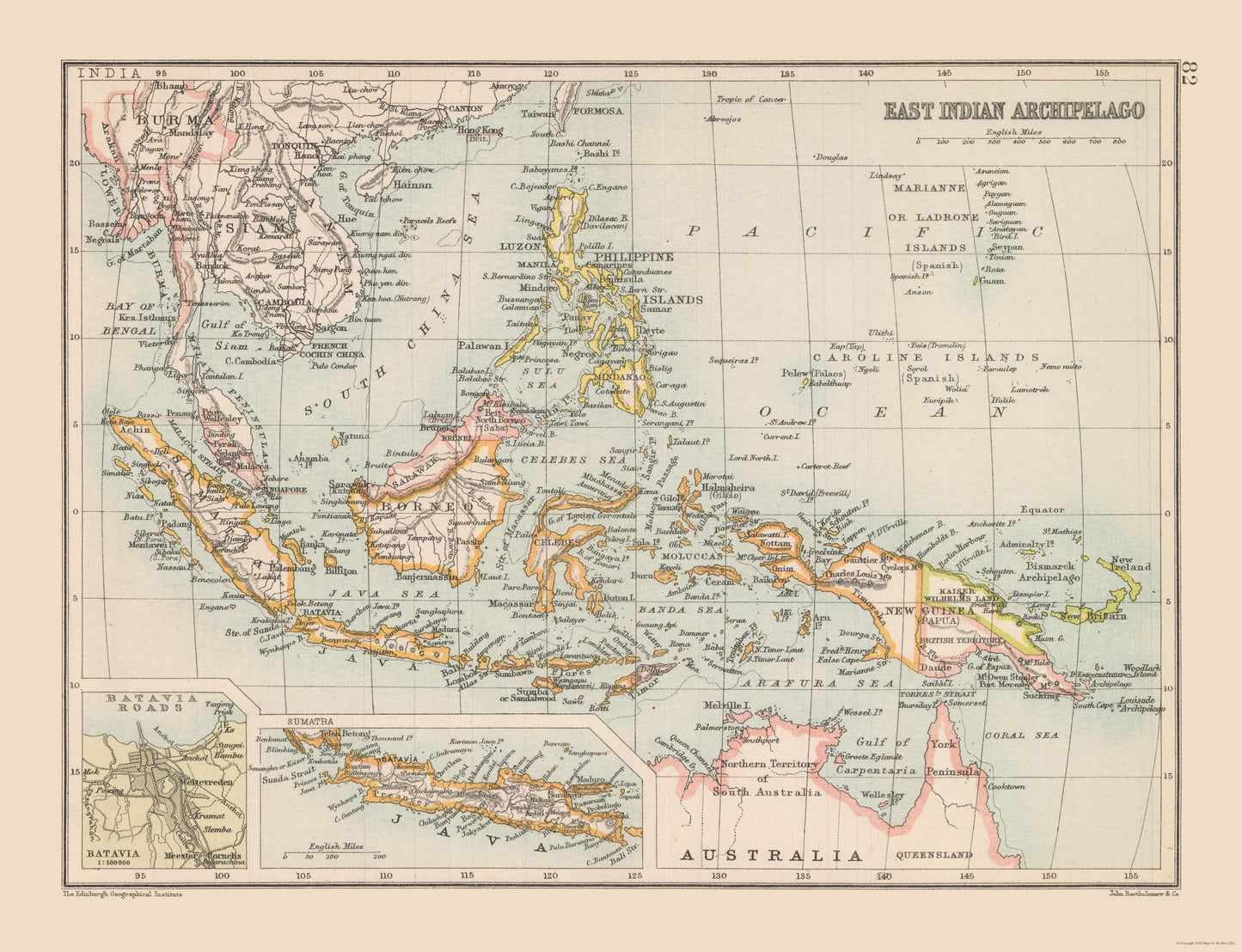 Old International Maps - Indonesia - Bartholomew 1892 - This is an exquisite full-color Reproduction printed on high-quality gloss paper, art paper or canvas.