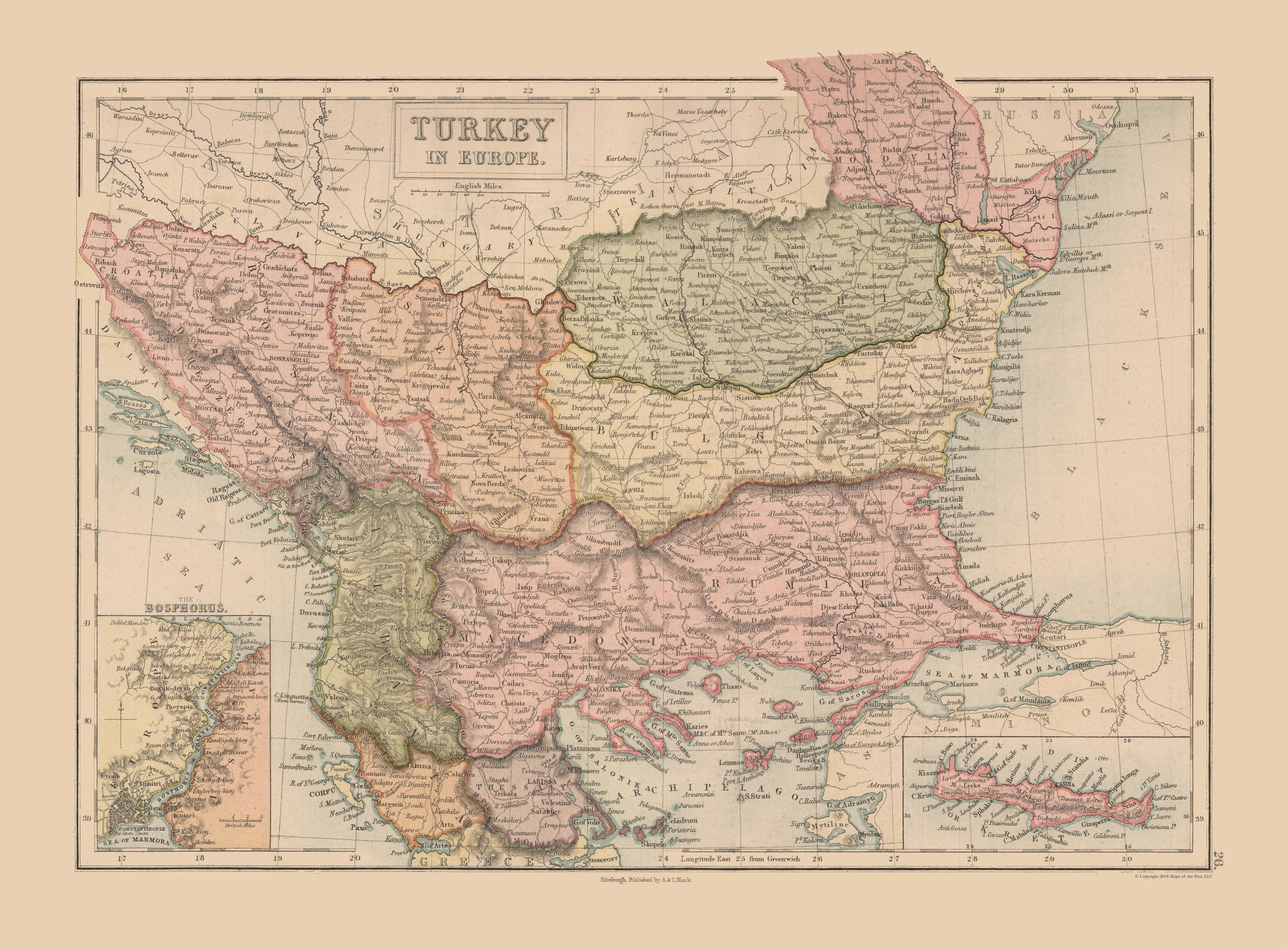 Old International Maps - Turkey in Europe - Black's Atlas 1867 - This is an exquisite full-color Reproduction printed on high-quality gloss paper, art paper or canvas.