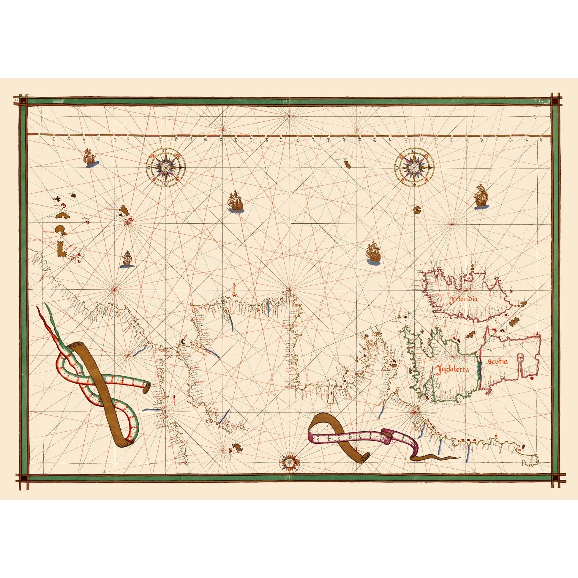 Old International Maps - Atlantic Ocean European Coastline - Martines 1587 - 31.53 x 23 - This is an exquisite full-color Reproduction printed on high-quality gloss paper, art paper or canvas.