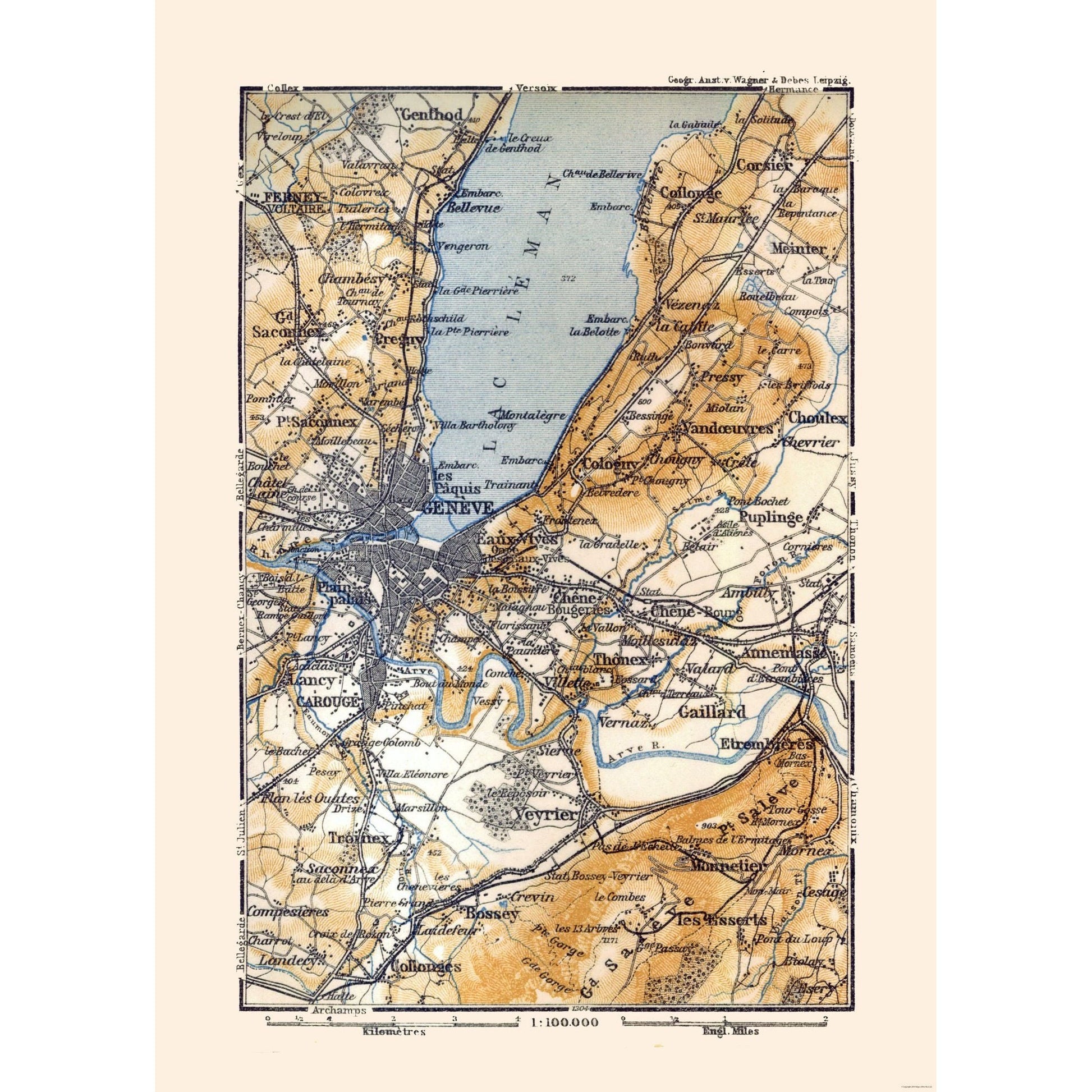 Old International Maps - Geneva Region - Switzerland - Baedeker 1921 - This is an exquisite full-color Reproduction printed on high-quality gloss paper, art paper or canvas.