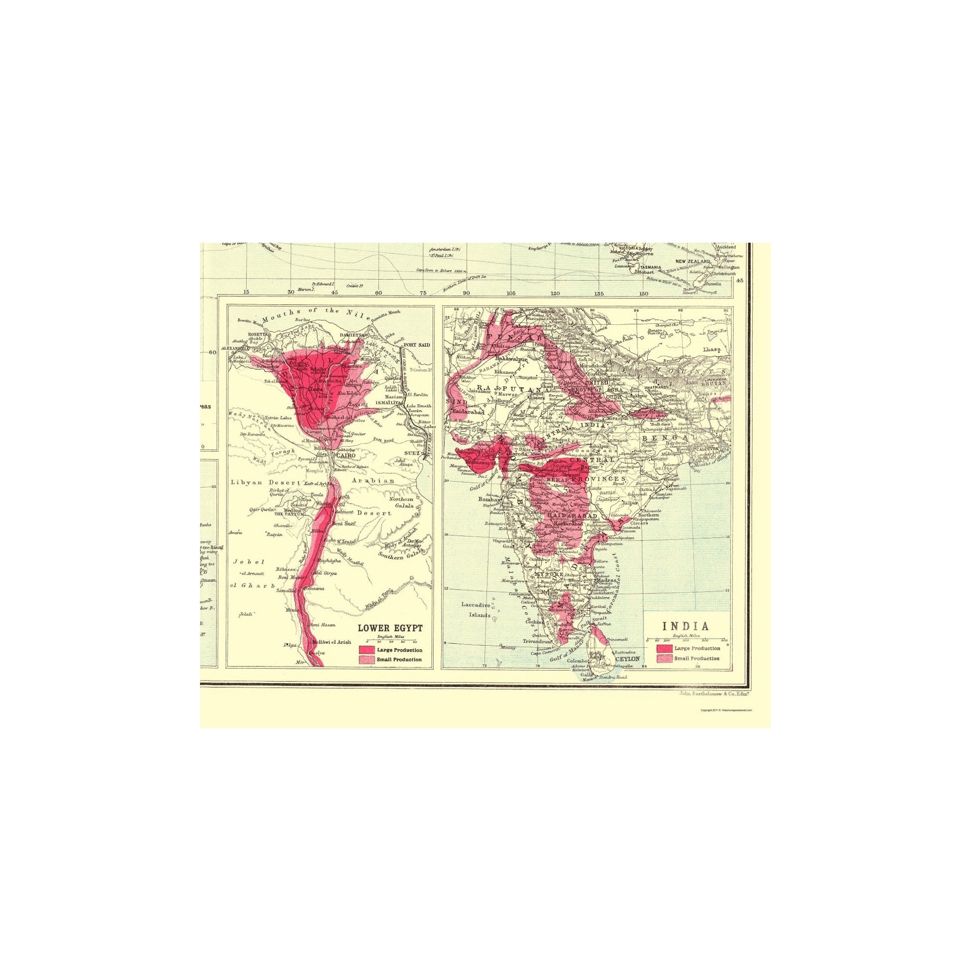 Old World Map - Global Cotton Production - Newnes 1907 - This is an exquisite full-color Reproduction printed on high-quality gloss paper, art paper or canvas.