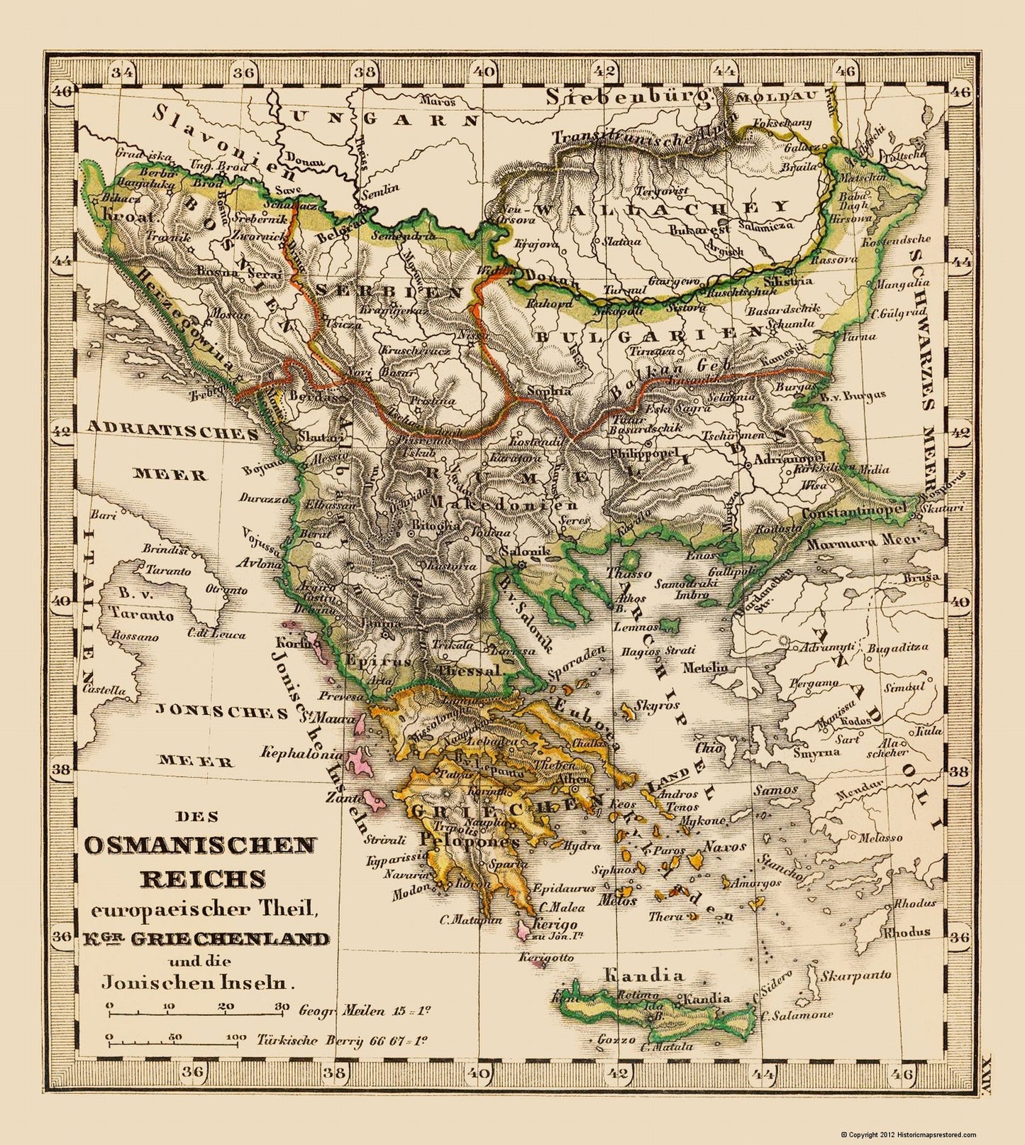 Historic Map - Greece Turkey - Stieler 1852 - 23 x 25.67 - Vintage Wall Art