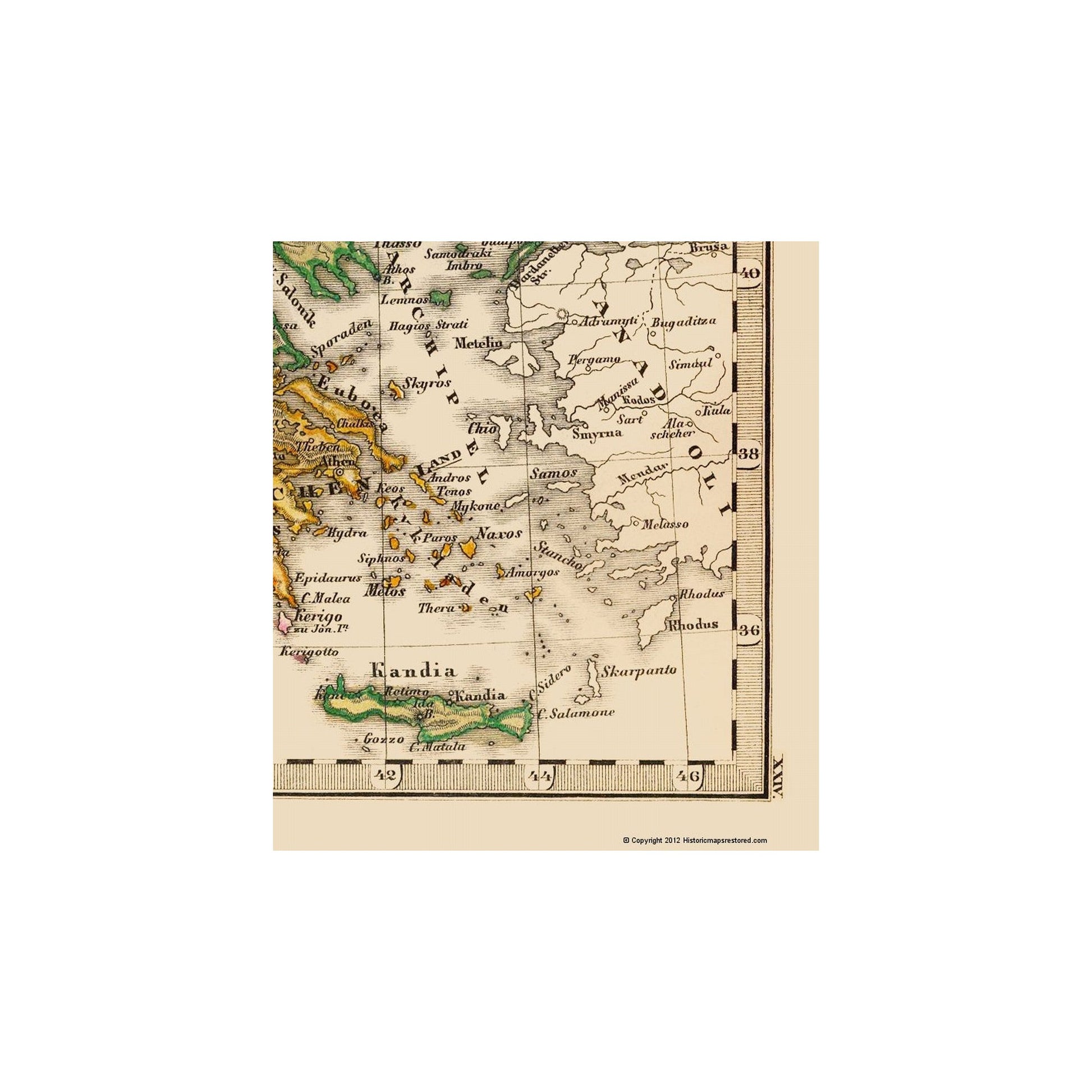 Old Mediterranean Map - Greece and Turkey - Stieler 1852 - This is an exquisite full-color Reproduction printed on high-quality gloss paper, art paper or canvas.