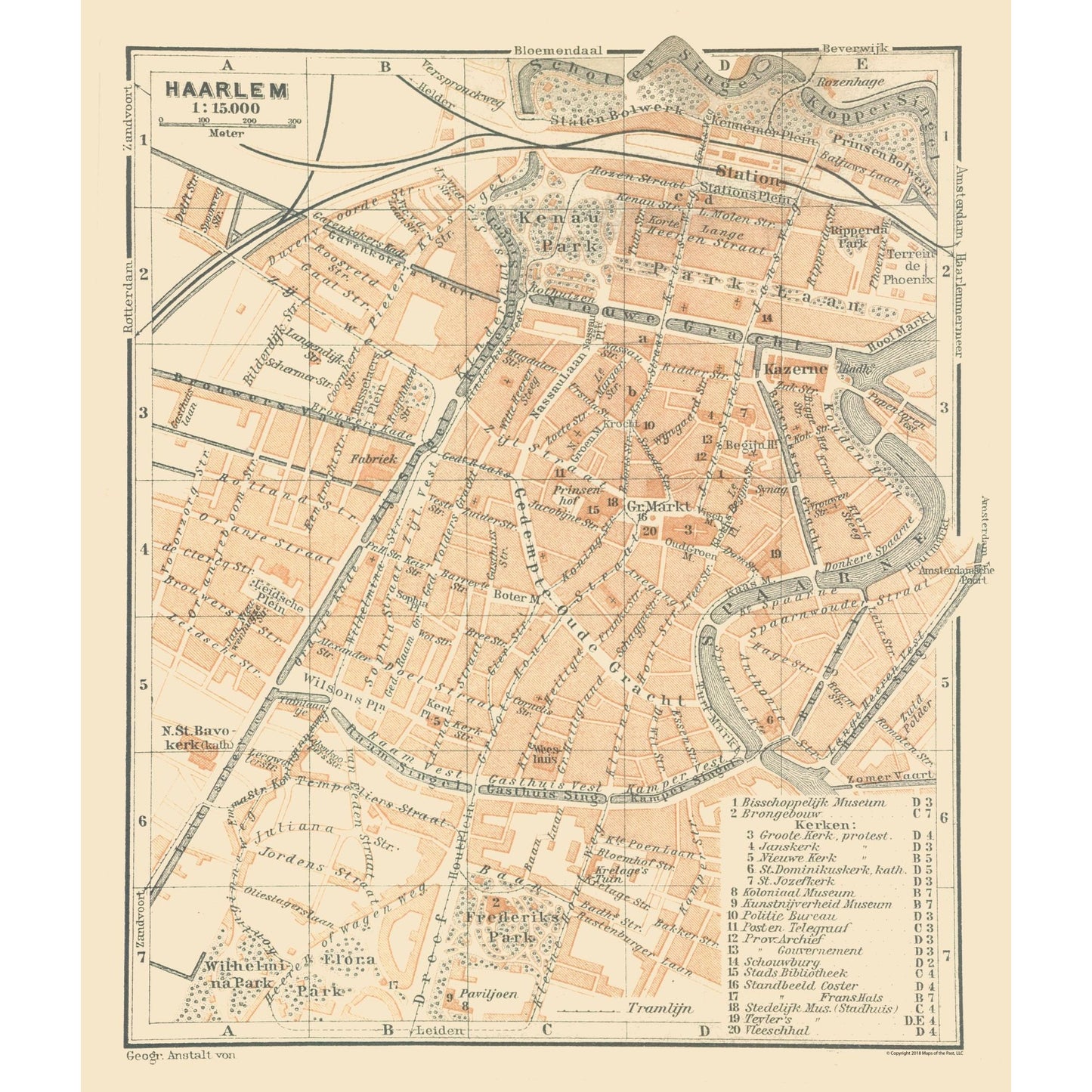 Historic Map - Haarlem Netherlands - Baedeker 1910 - 23 x 27.00 - Vintage Wall Art