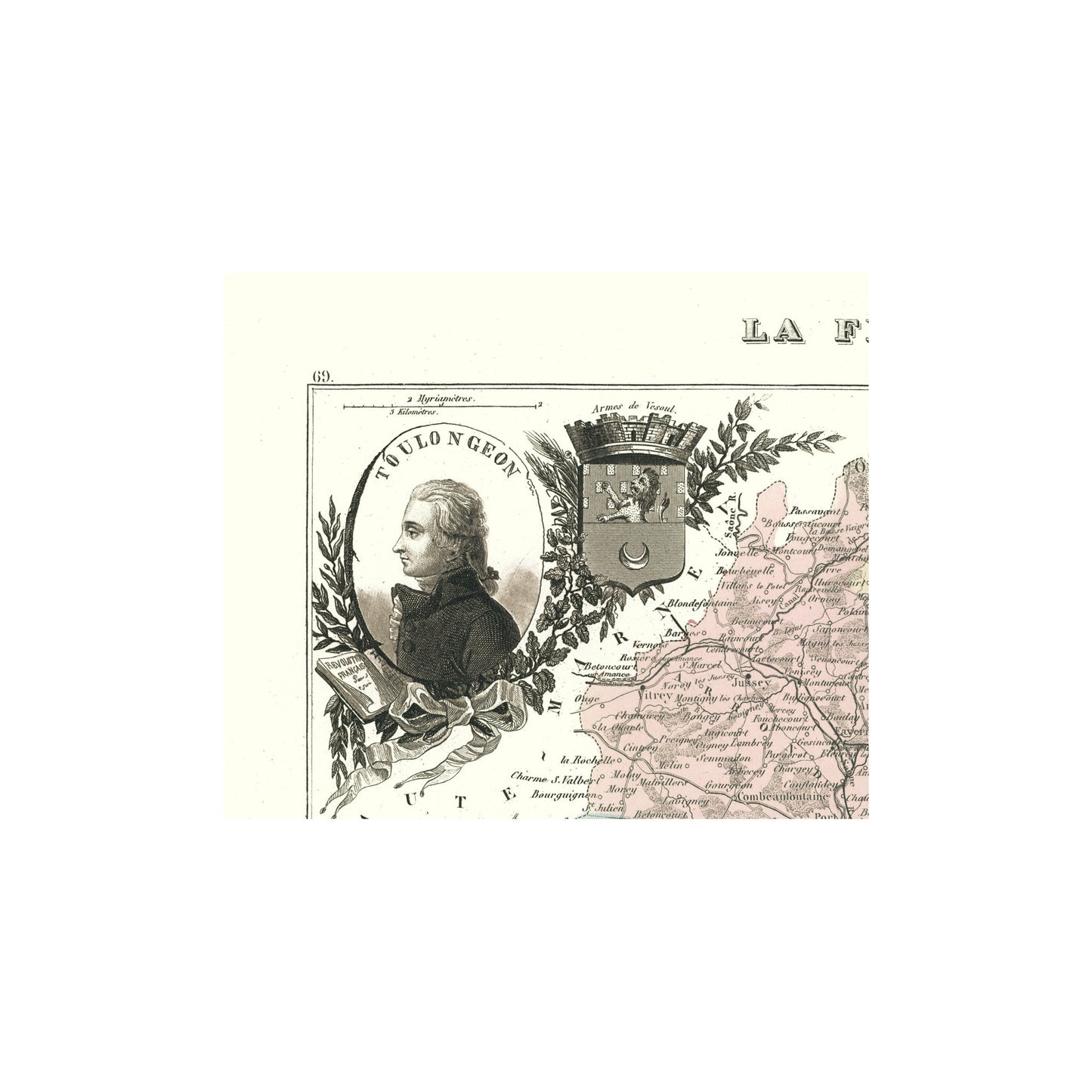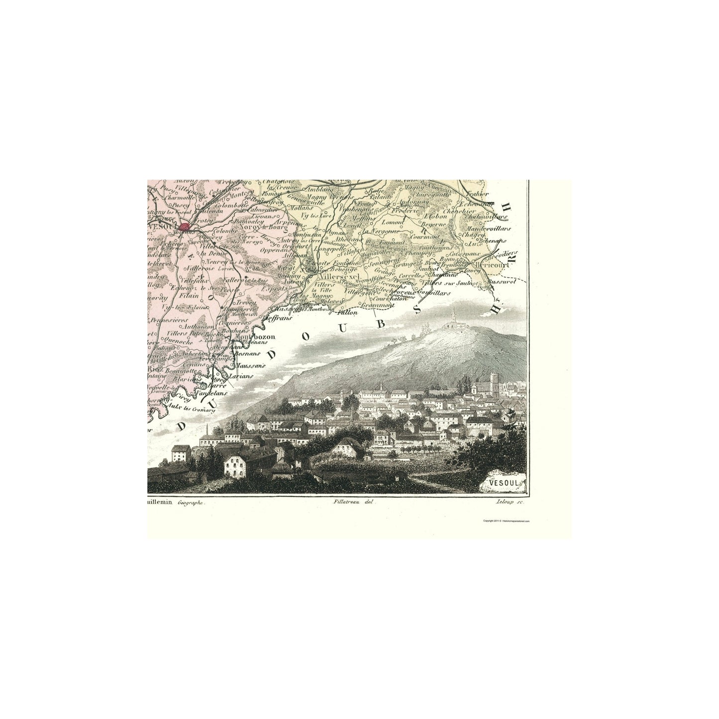 Old France Map - Haute-Saone Department - Migeon 1869 - This is an exquisite full-color Reproduction printed on high-quality gloss paper, art paper or canvas.