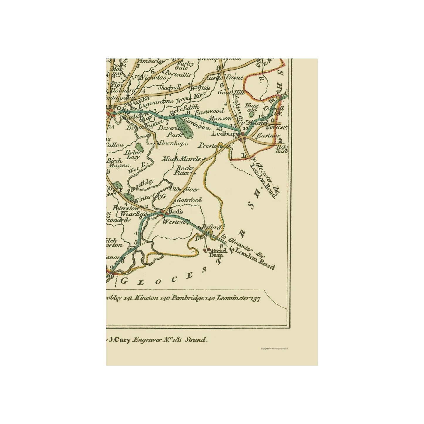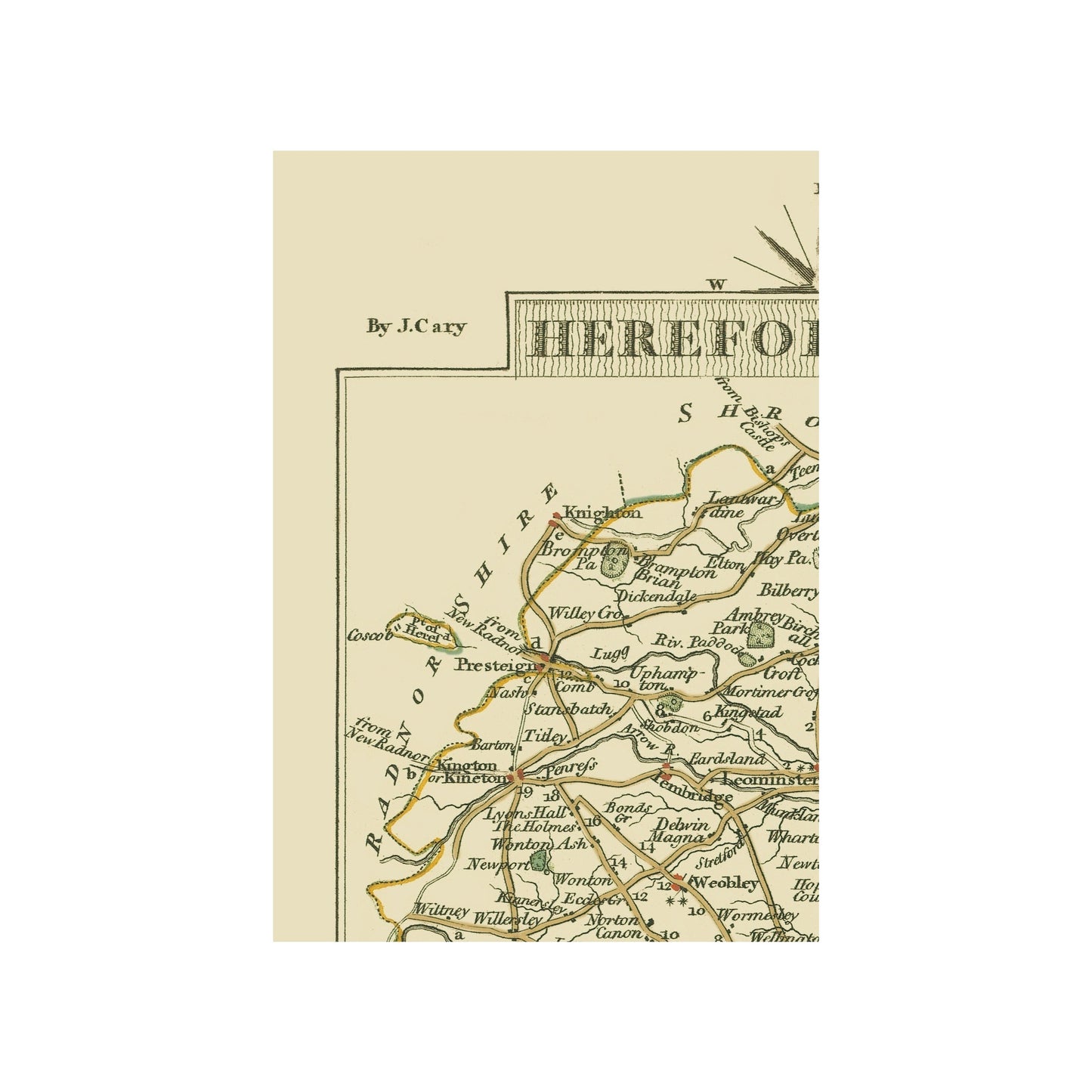 Old Great Britain Map - Herefordshire County, England - Cary 1792 - This is an exquisite full-color Reproduction printed on high-quality gloss paper, art paper or canvas.