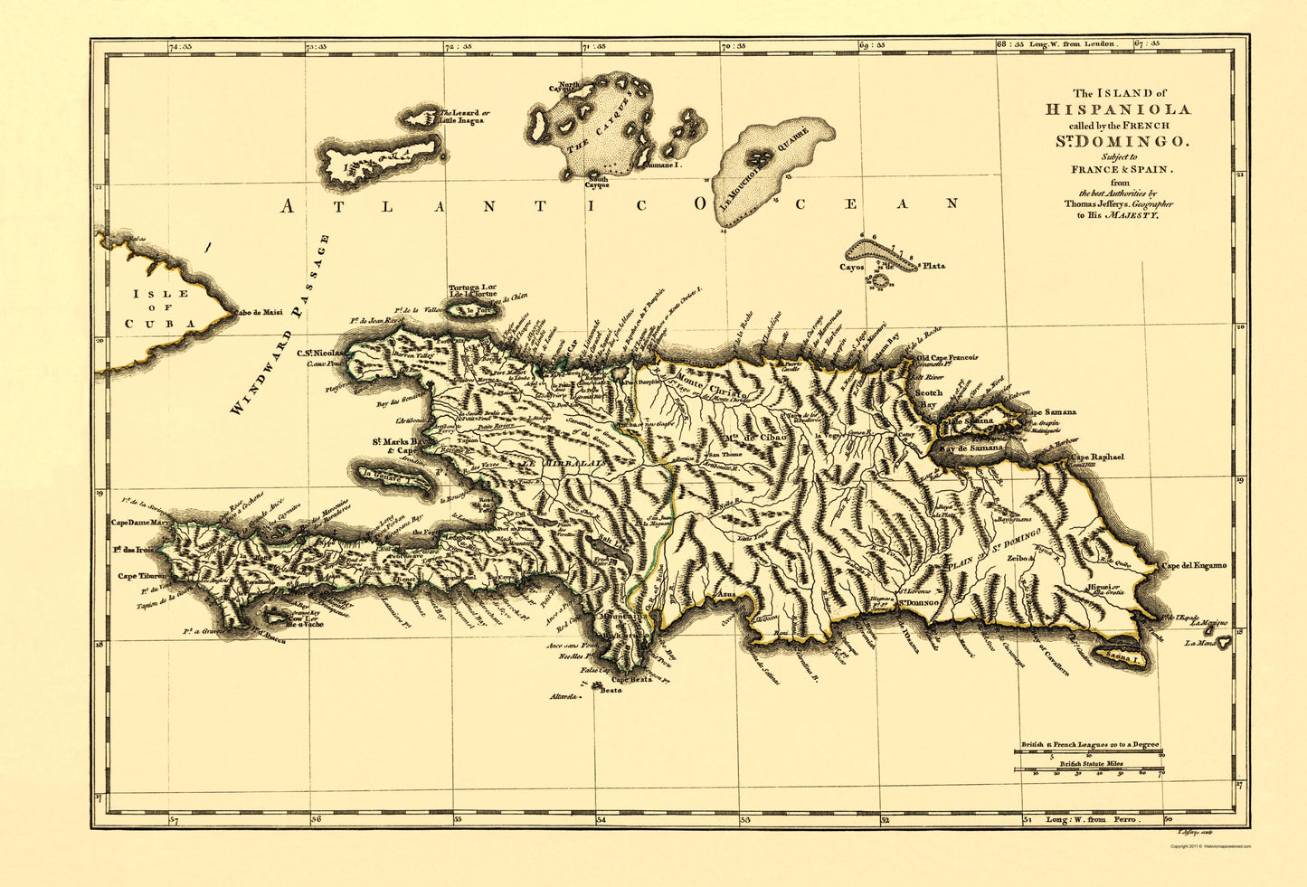 Historic Map - Hispaniola Dominican Republic Haiti - Jeffreys 1762 - 23 x 33 - Vintage Wall Art