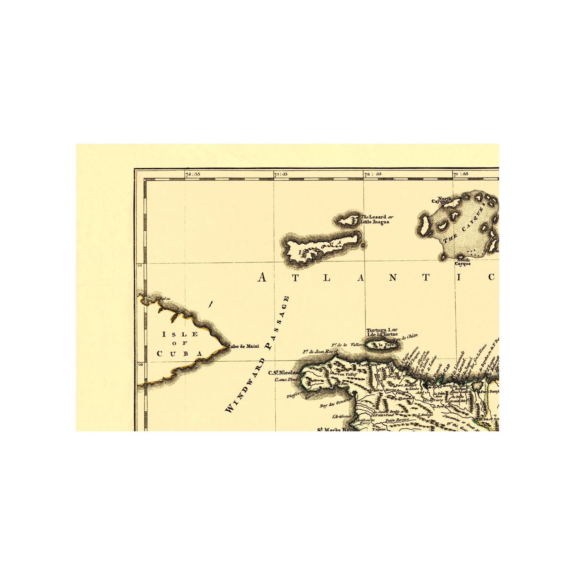 Old Caribbean Map - Hispaniola Island or Saint Domingo - Jeffreys 1762 - This is an exquisite full-color Reproduction printed on high-quality gloss paper, art paper or canvas.