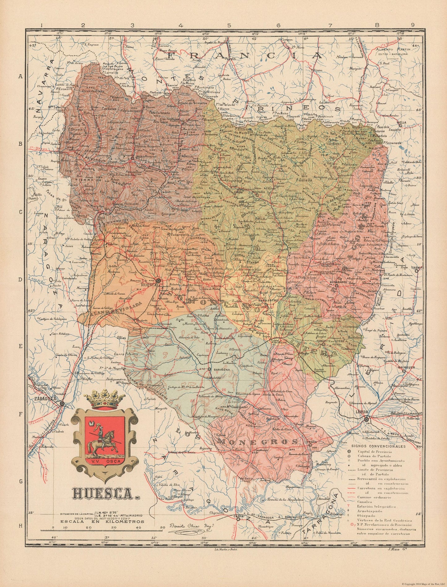 Historic Map - Huesca Spain - Martin 1911 - 23 x 30.17 - Vintage Wall Art