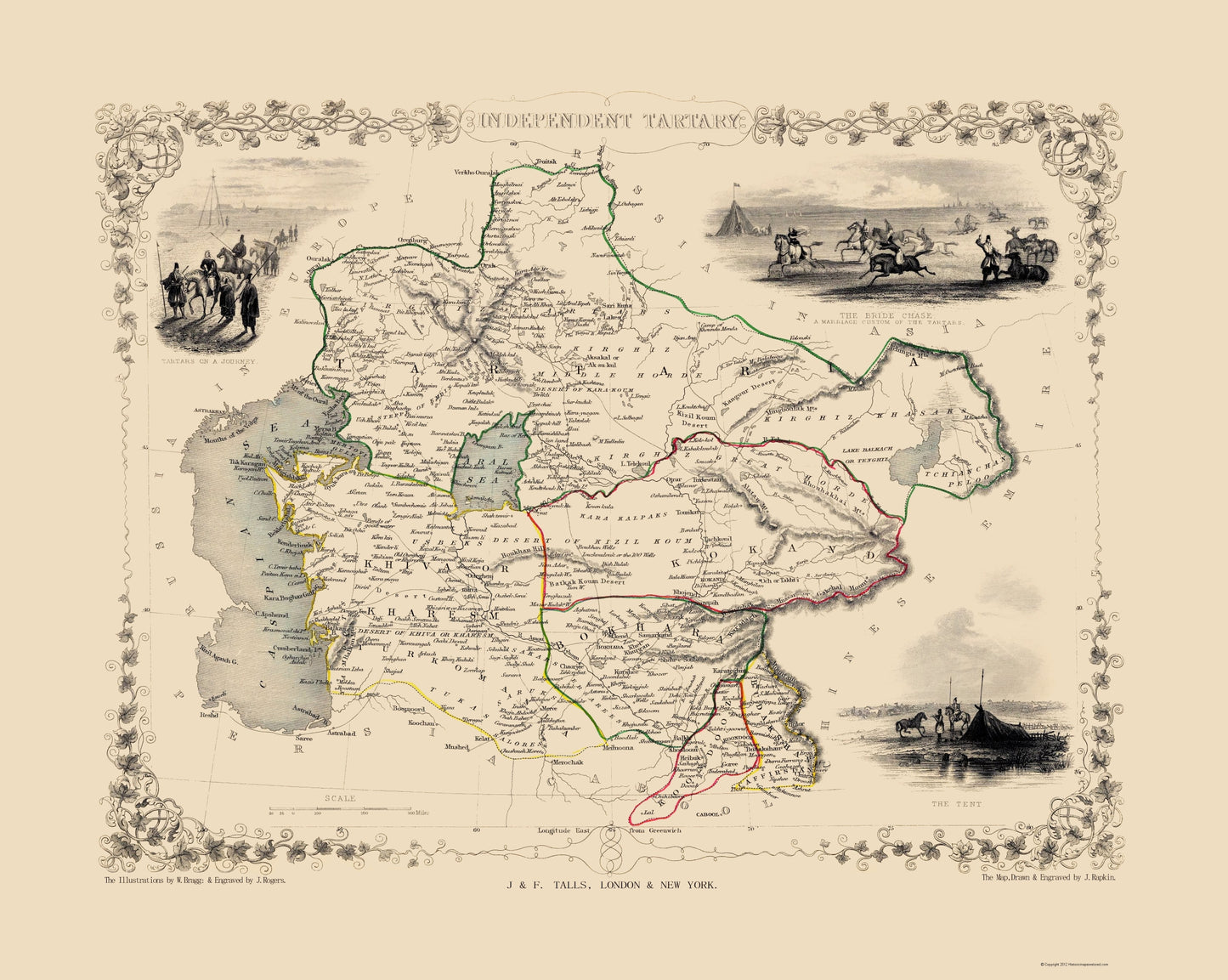 Old Asia Map - Independent Tartary - Tallis 1851 - This is an exquisite full-color Reproduction printed on high-quality gloss paper, art paper or canvas.