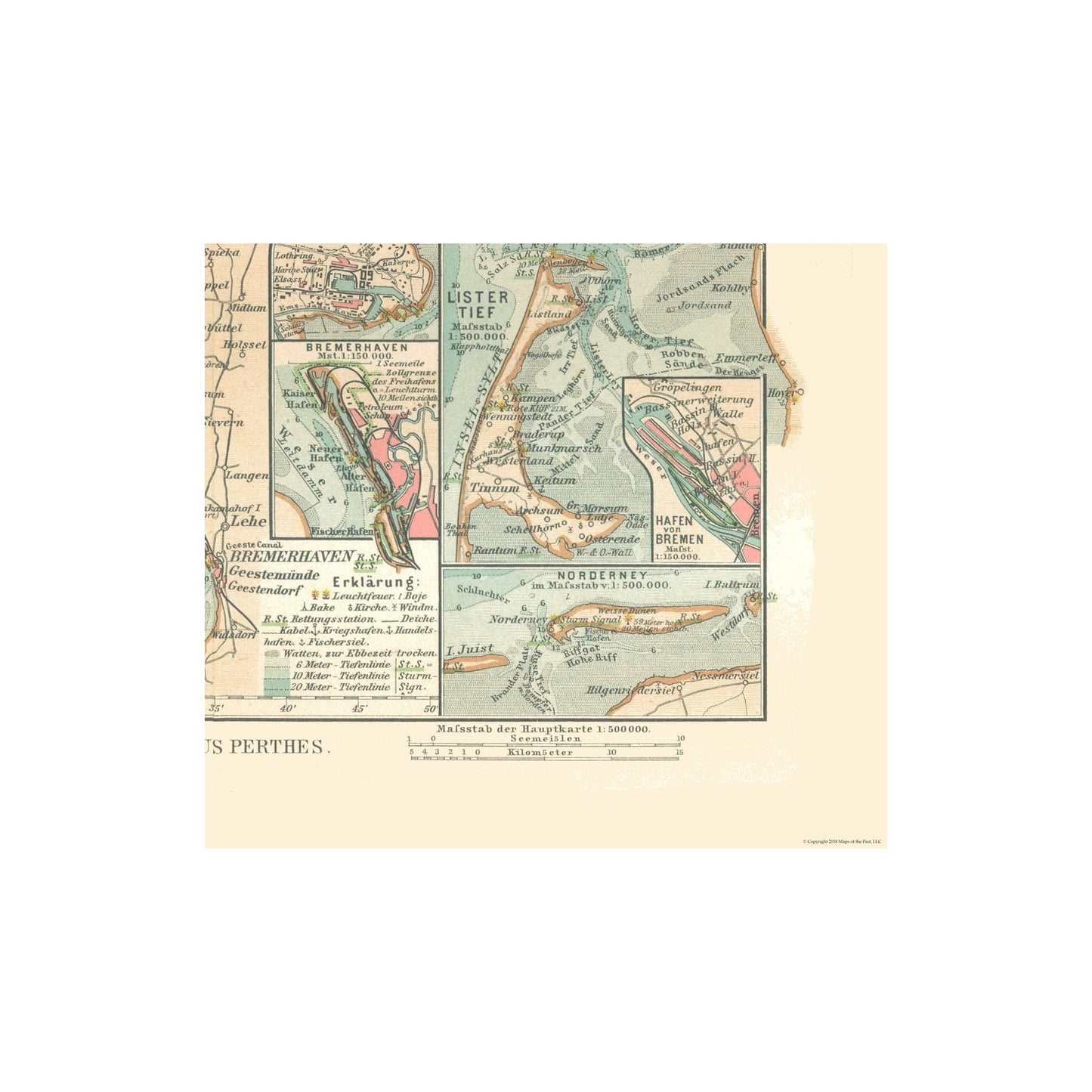 Old International Maps - Jade Bight, Elbe-Weser - Germany - Perthes 1914 - This is an exquisite full-color Reproduction printed on high-quality gloss paper, art paper or canvas.