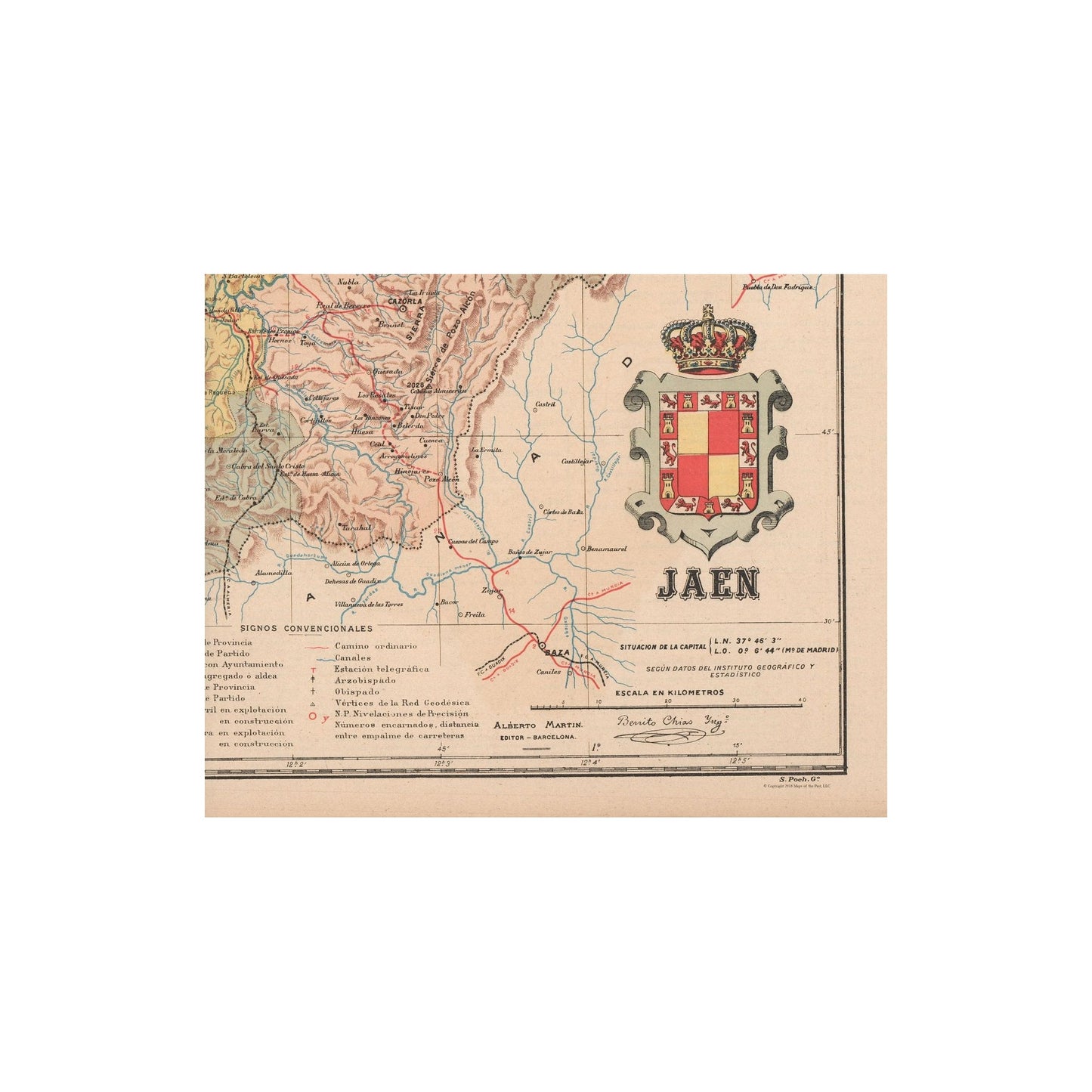 Old International Maps - Jaen - Martin 1911 - This is an exquisite full-color Reproduction printed on high-quality gloss paper, art paper or canvas.