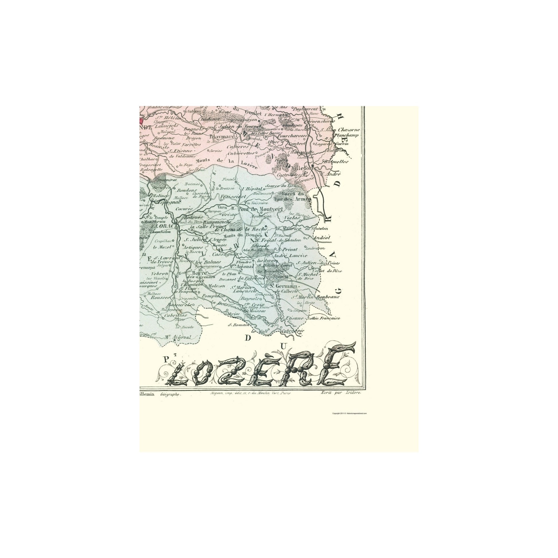 Old France Map - Lozere Region - Migeon 1869 - This is an exquisite full-color Reproduction printed on high-quality gloss paper, art paper or canvas.