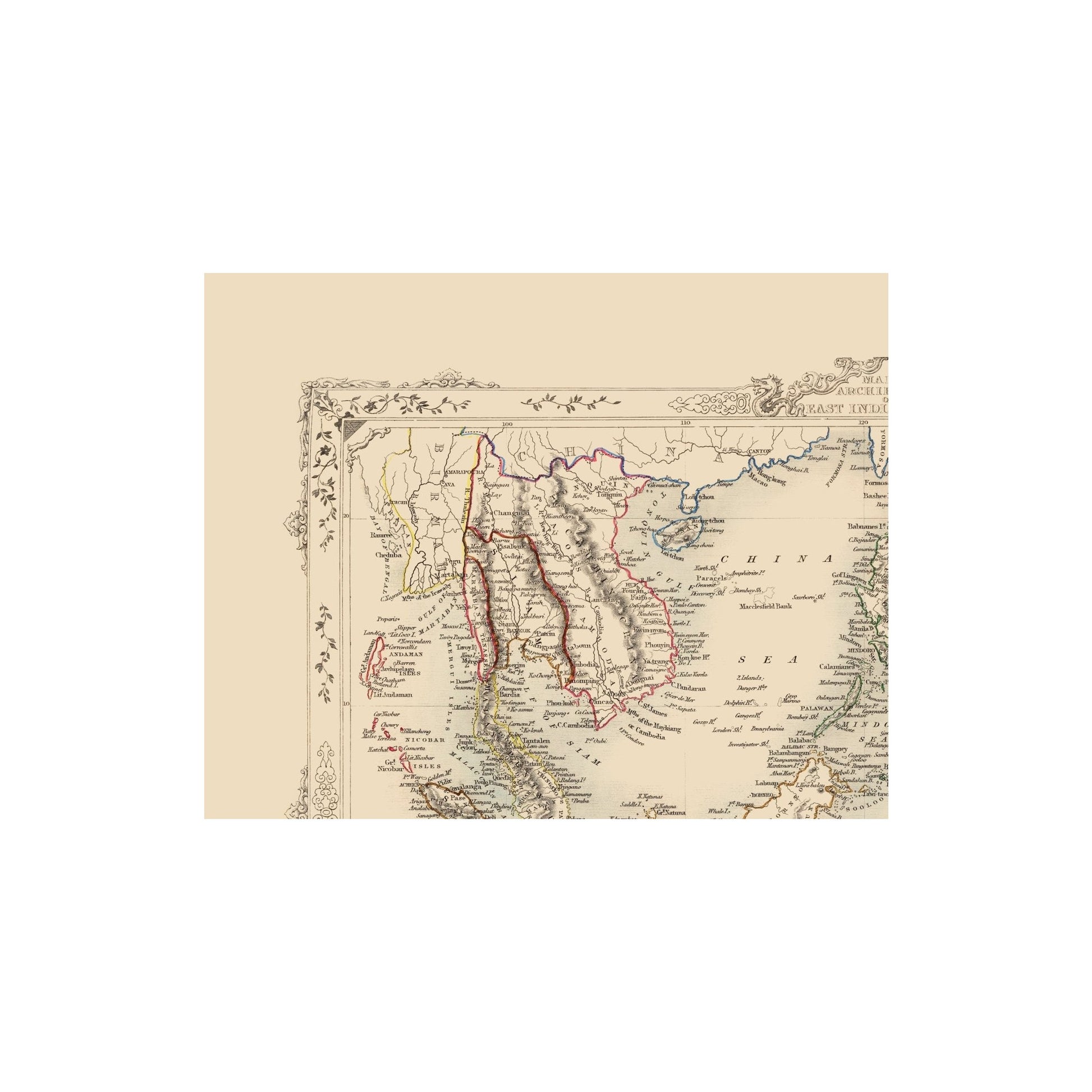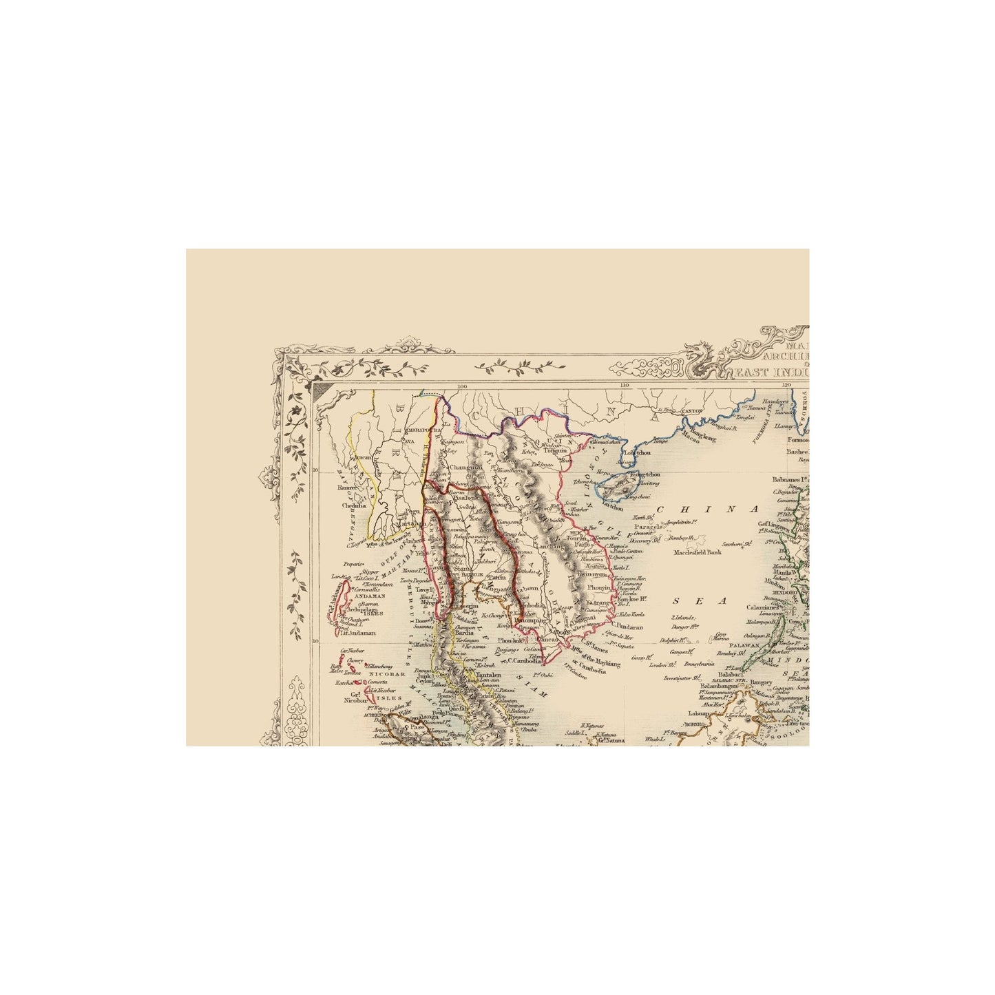 Old Asia Map - Malasian Archipelago - Tallis 1851 - This is an exquisite full-color Reproduction printed on high-quality gloss paper, art paper or canvas.