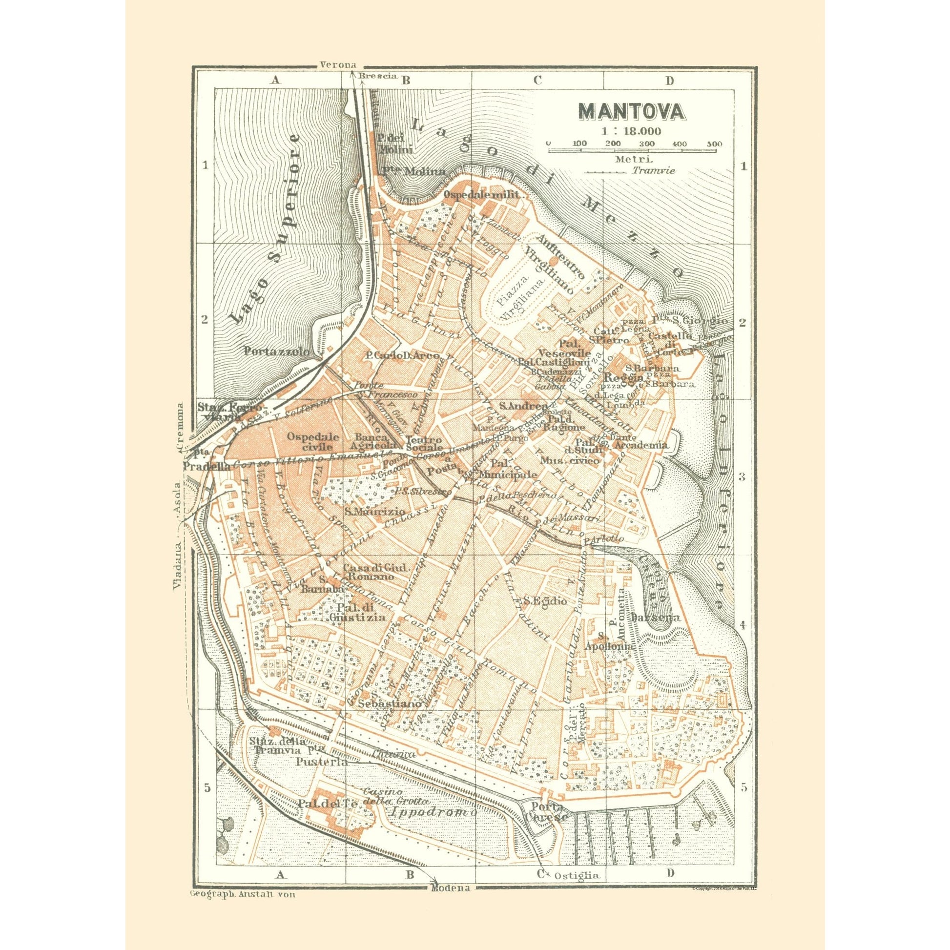 Historic Map - Mantova Italy - Bertarelli 1914 - 23 x 31.24 - Vintage Wall Art