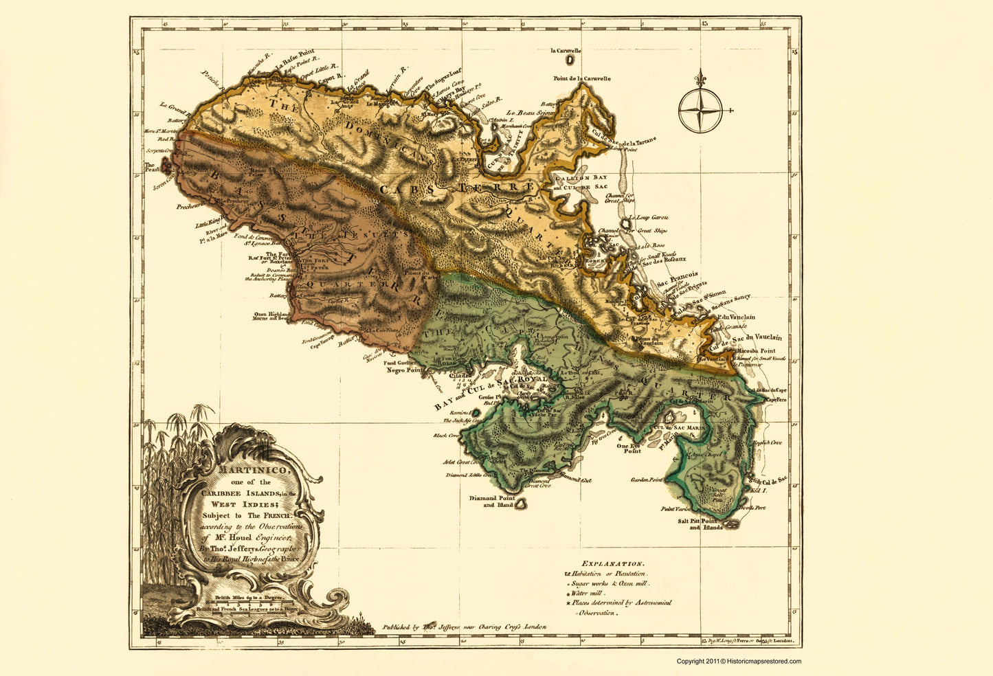 Historic Map - Martinique - Jefferys 1760 - 23 x 33.79 - Vintage Wall Art