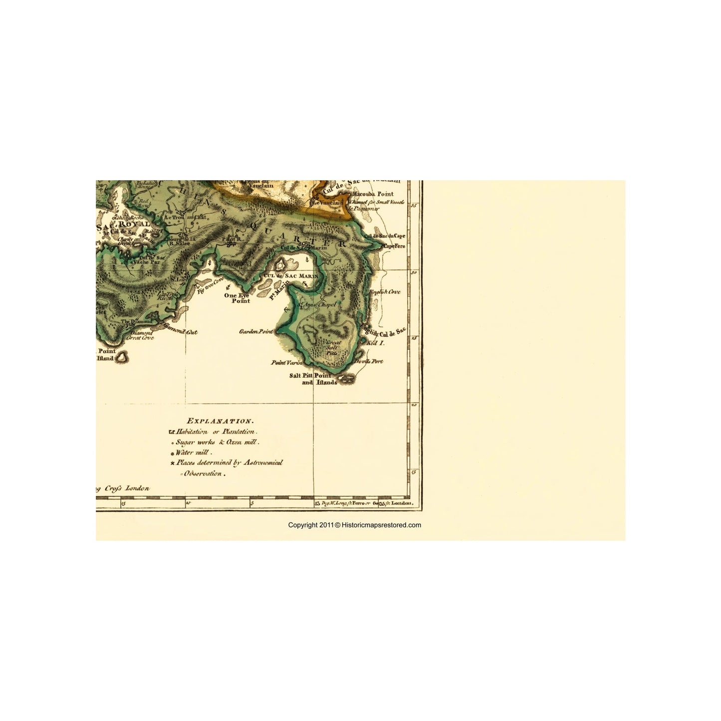 Old Caribbean Map - Martinique - Jefferys 1760 - This is an exquisite full-color Reproduction printed on high-quality gloss paper, art paper or canvas.