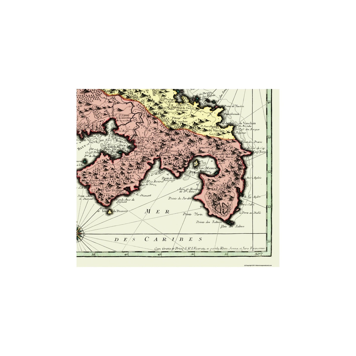 Old Caribbean Map - Martinique Winward Islands - 1735 - This is an exquisite full-color Reproduction printed on high-quality gloss paper, art paper or canvas.