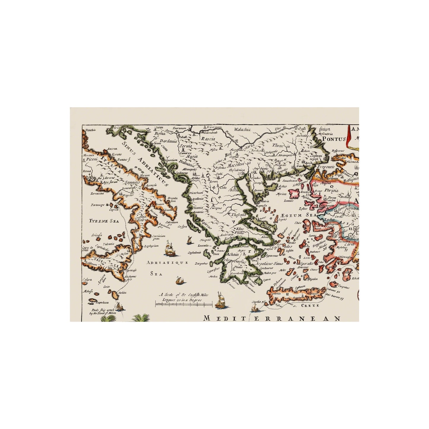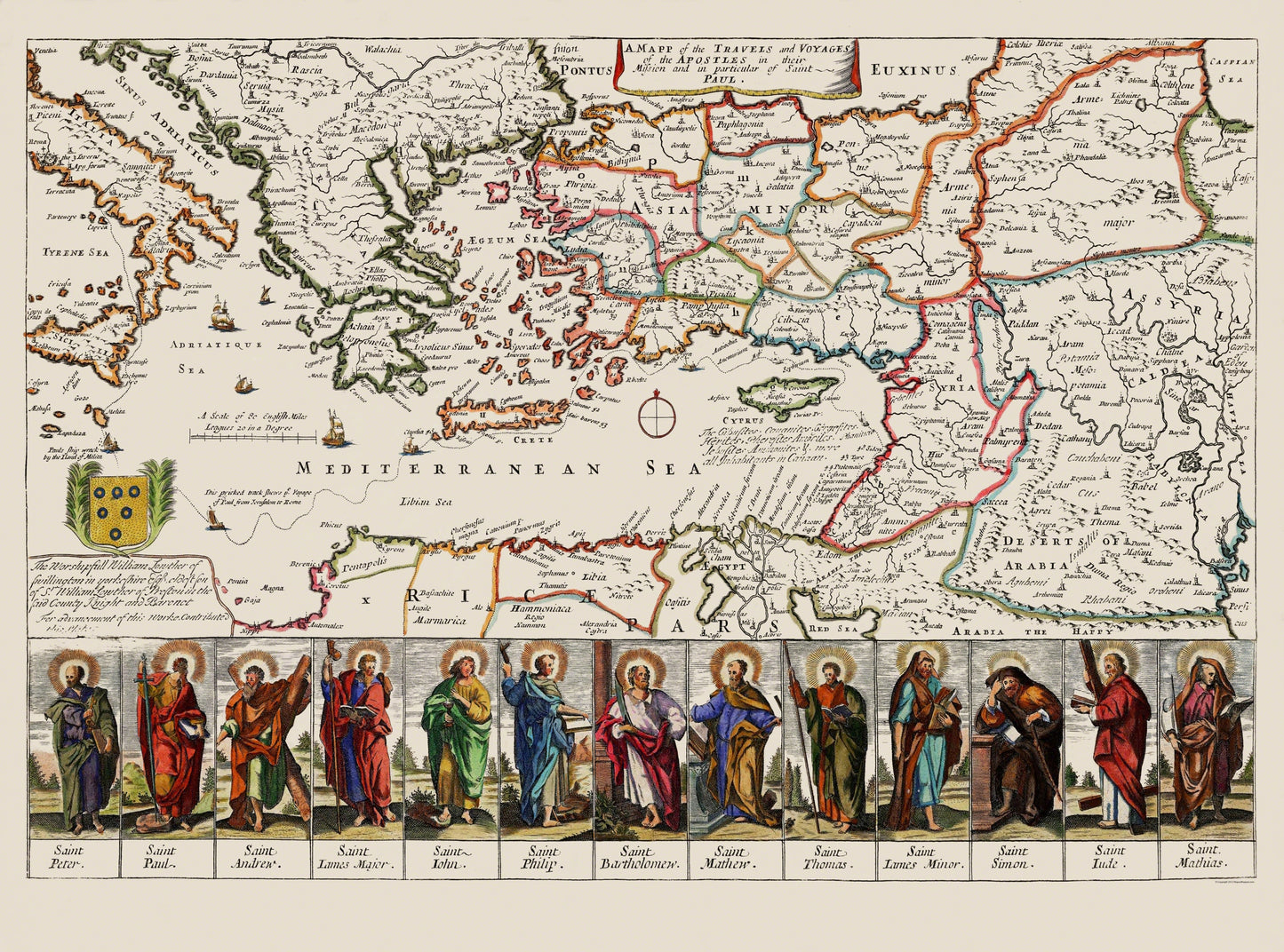 Historic Map - Mediterranean Apostles Travels Voyages - Loivther 1680 - 31 x 23 - Vintage Wall Art