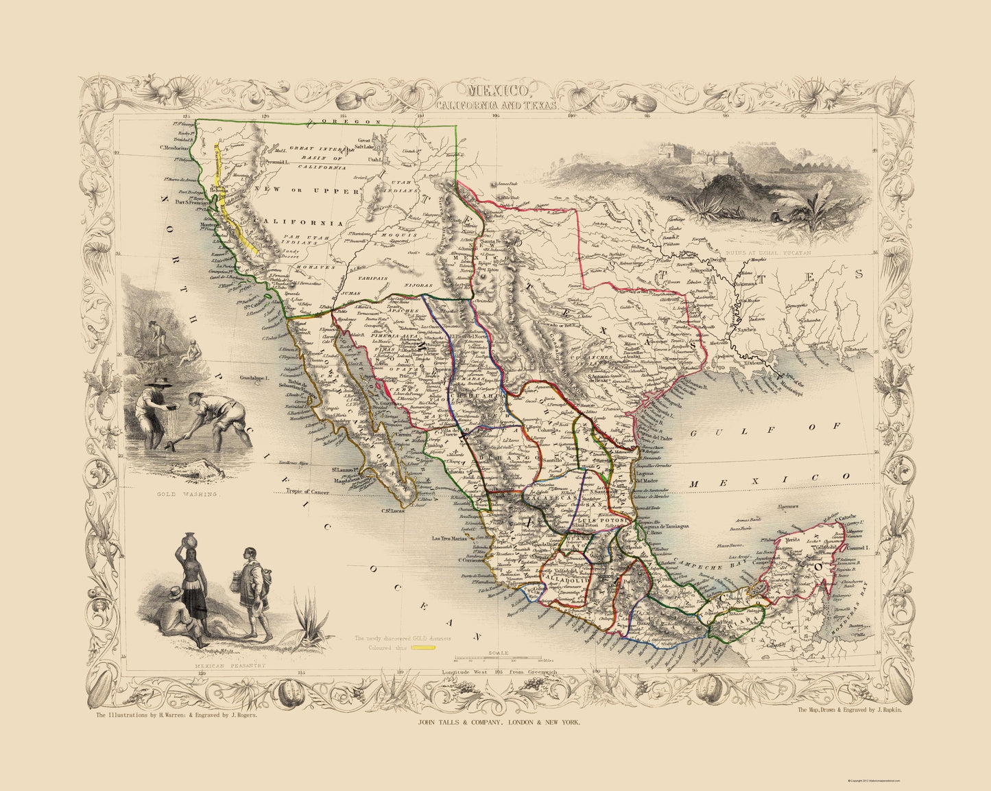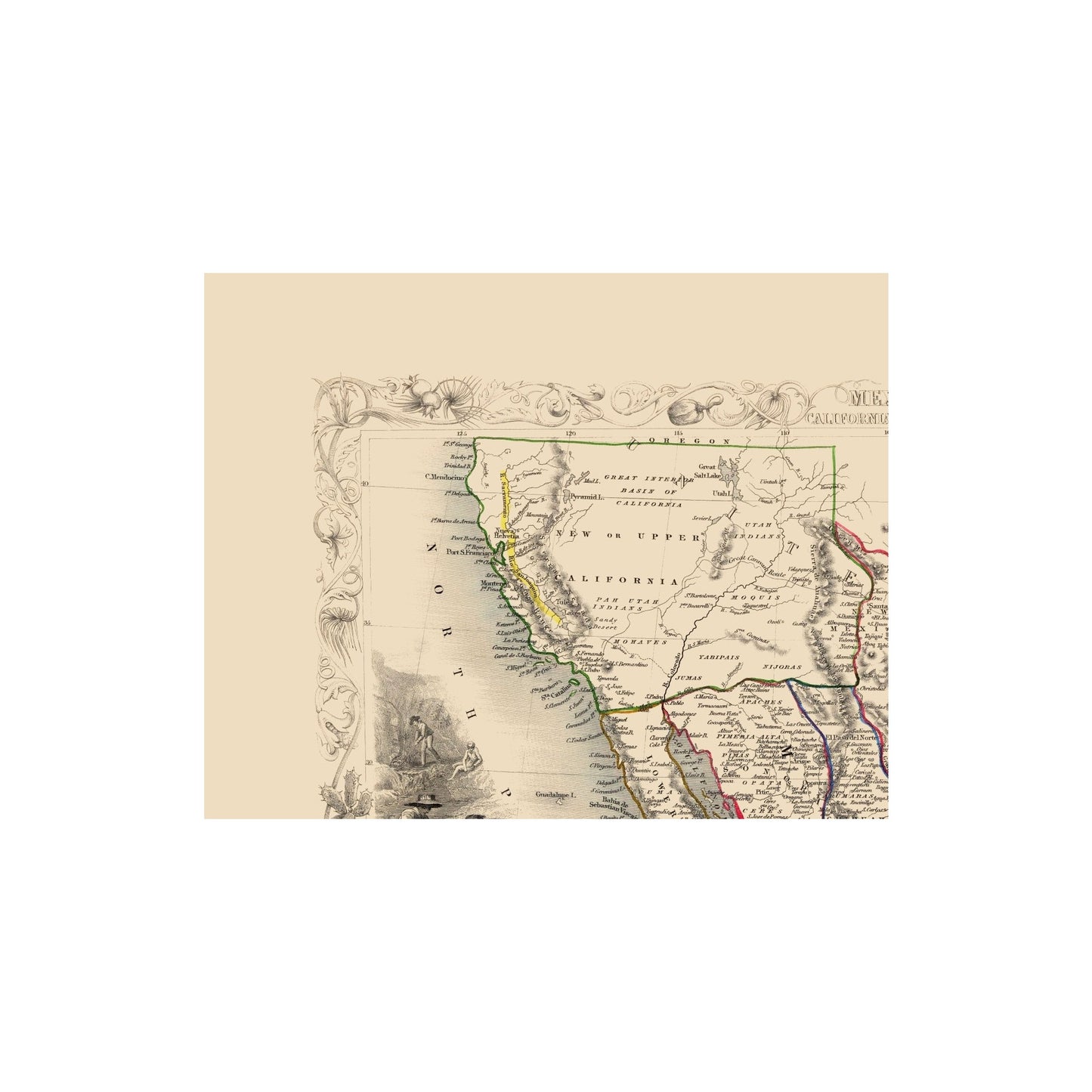 Historic Map - Mexico California Texas - Tallis 1851 - 23 x 28.83 - Vintage Wall Art