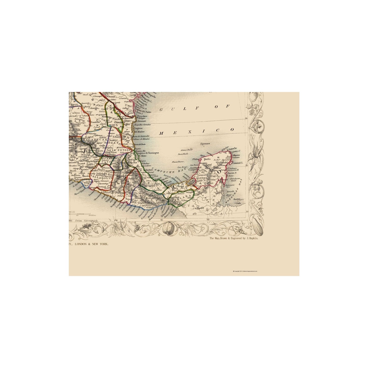 Old North America Map - Mexico, California, Texas - Tallis 1851 - This is an exquisite full-color Reproduction printed on high-quality gloss paper, art paper or canvas.