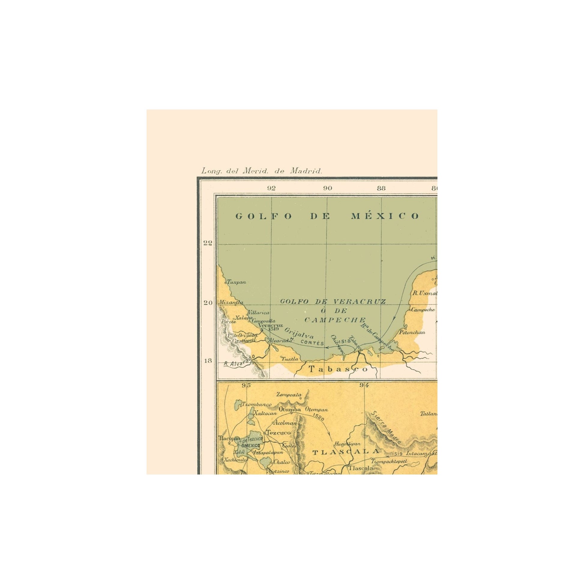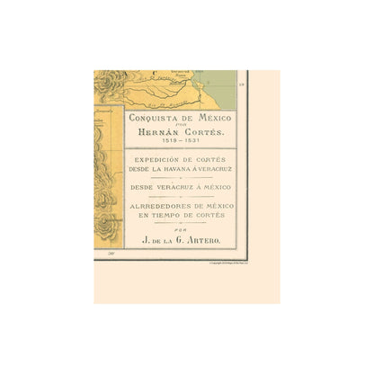Old International Maps - Conquest of Mexico 1519 AD - 1531 AD - Artero 1879 - This is an exquisite full-color Reproduction printed on high-quality gloss paper, art paper or canvas.
