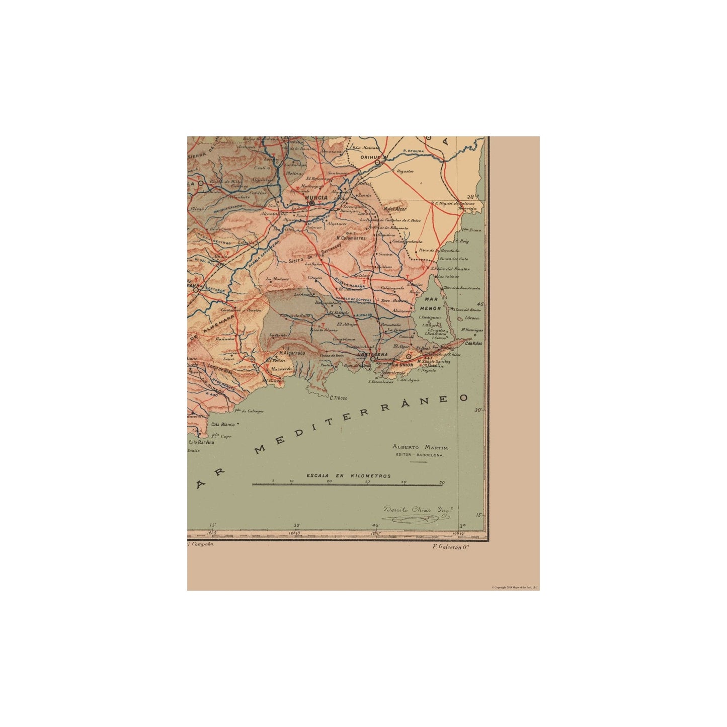 Old International Maps - Spain - Murcia 1902 - Martine 1904 - This is an exquisite full-color Reproduction printed on high-quality gloss paper, art paper or canvas.