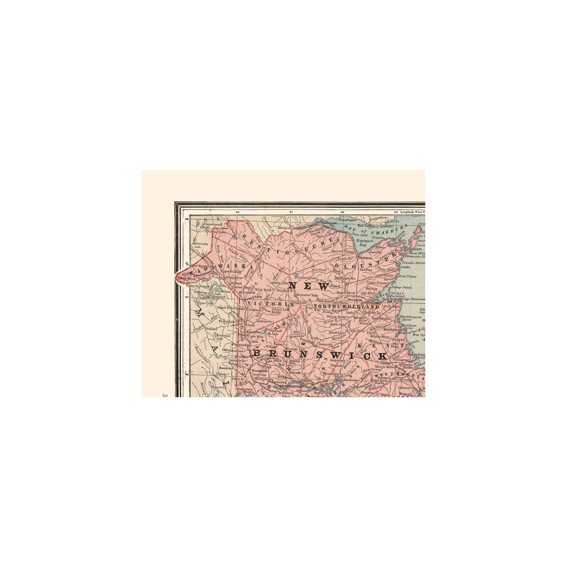 Old International Maps - New Brunswick, Nova Scotia - Cram's Atlas 1888 - This is an exquisite full-color Reproduction printed on high-quality gloss paper, art paper or canvas.