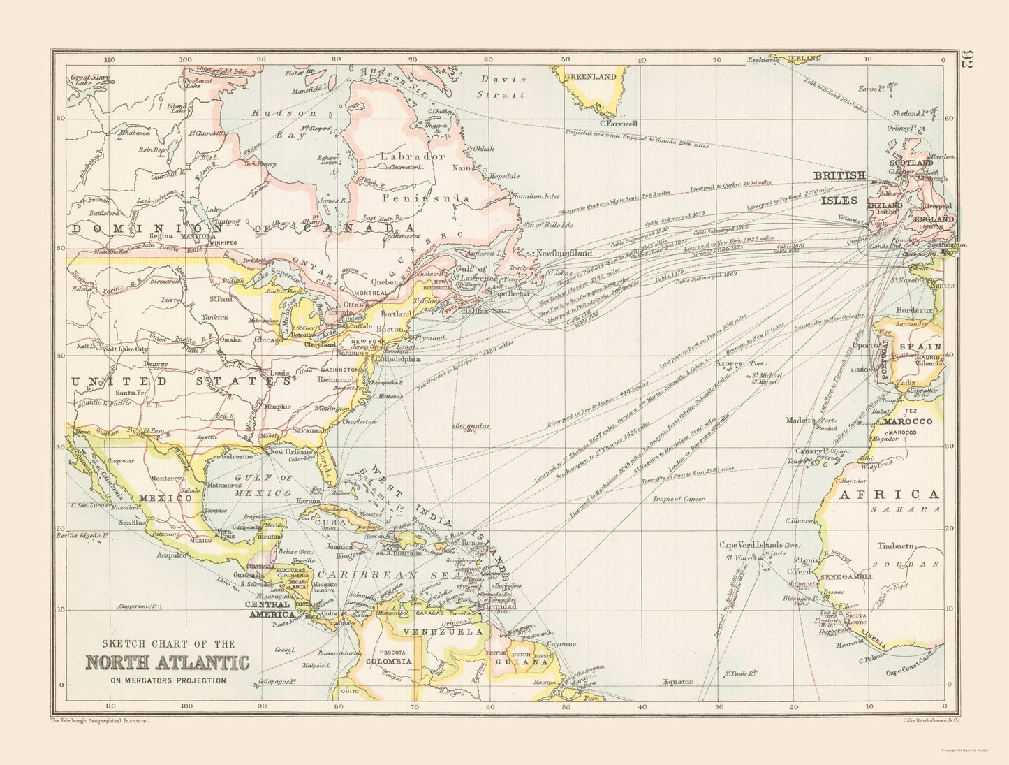 Old International Maps - North Atlantic Chart - Bartholomew 1892 - This is an exquisite full-color Reproduction printed on high-quality gloss paper, art paper or canvas.