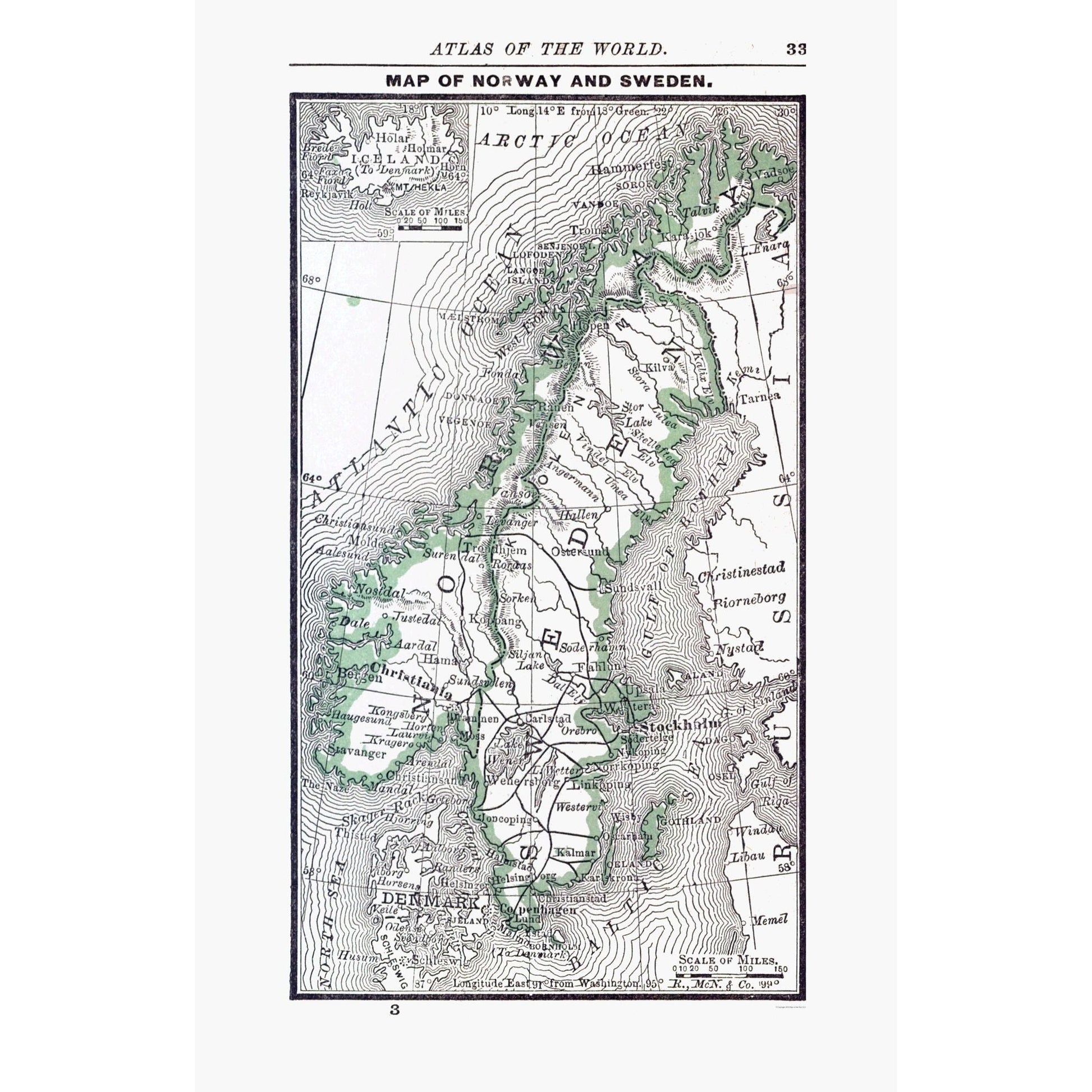 Old International Maps - Norway - Sweden- Alden 1886 - This is an exquisite full-color Reproduction printed on high-quality gloss paper, art paper or canvas.