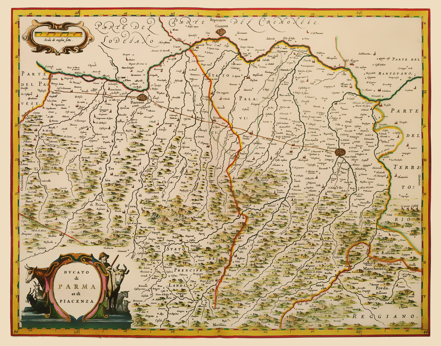 Old Italy Map - Parma and Placenza Region - Blaeu 1640 - This is an exquisite full-color Reproduction printed on high-quality gloss paper, art paper or canvas.