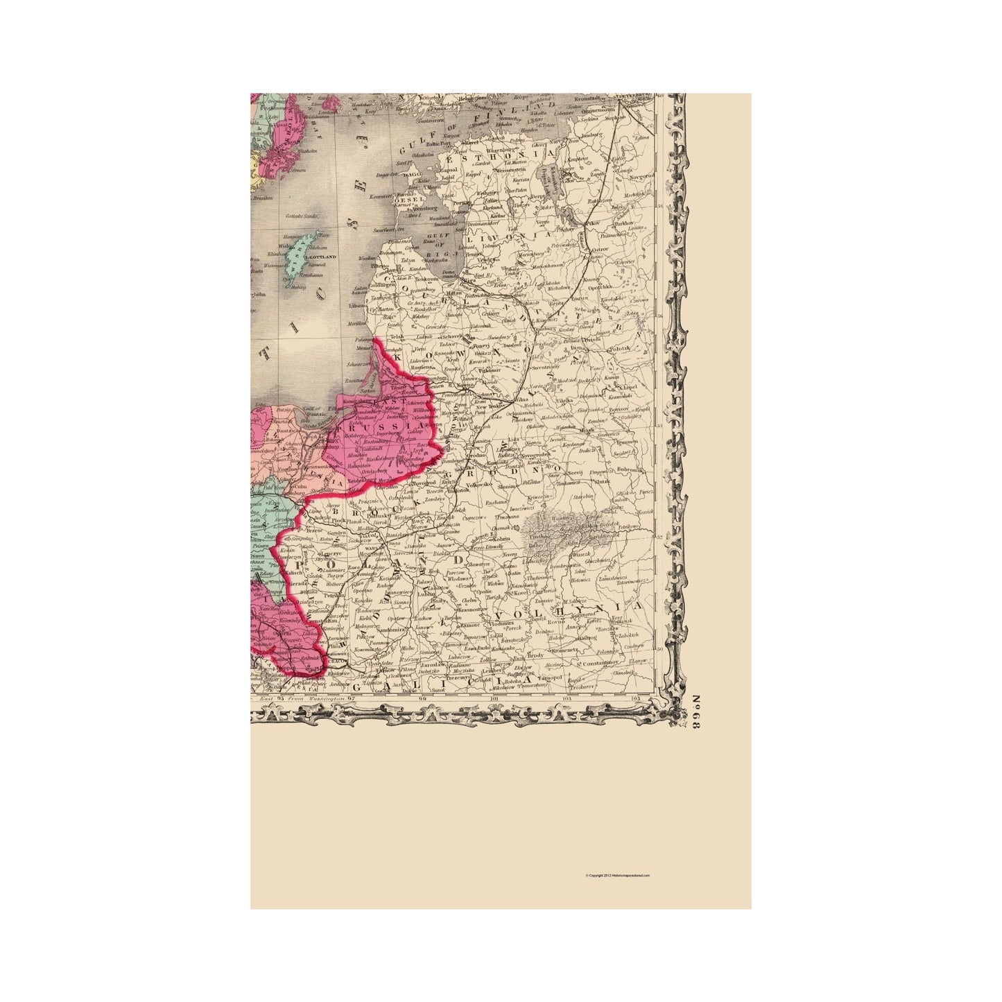 Historic Map - Prussia Sweden Norway Denmark - Johnson 1860 - 23 x 37 - Vintage Wall Art