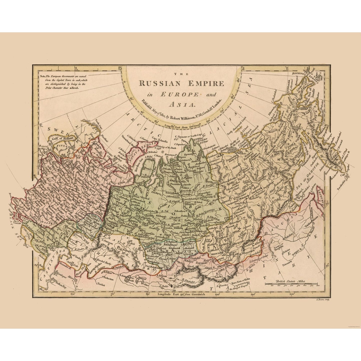 Old International Maps - Russian Empire - Europe and Asia - Wilkinson 1801 - This is an exquisite full-color Reproduction printed on high-quality gloss paper, art paper or canvas.