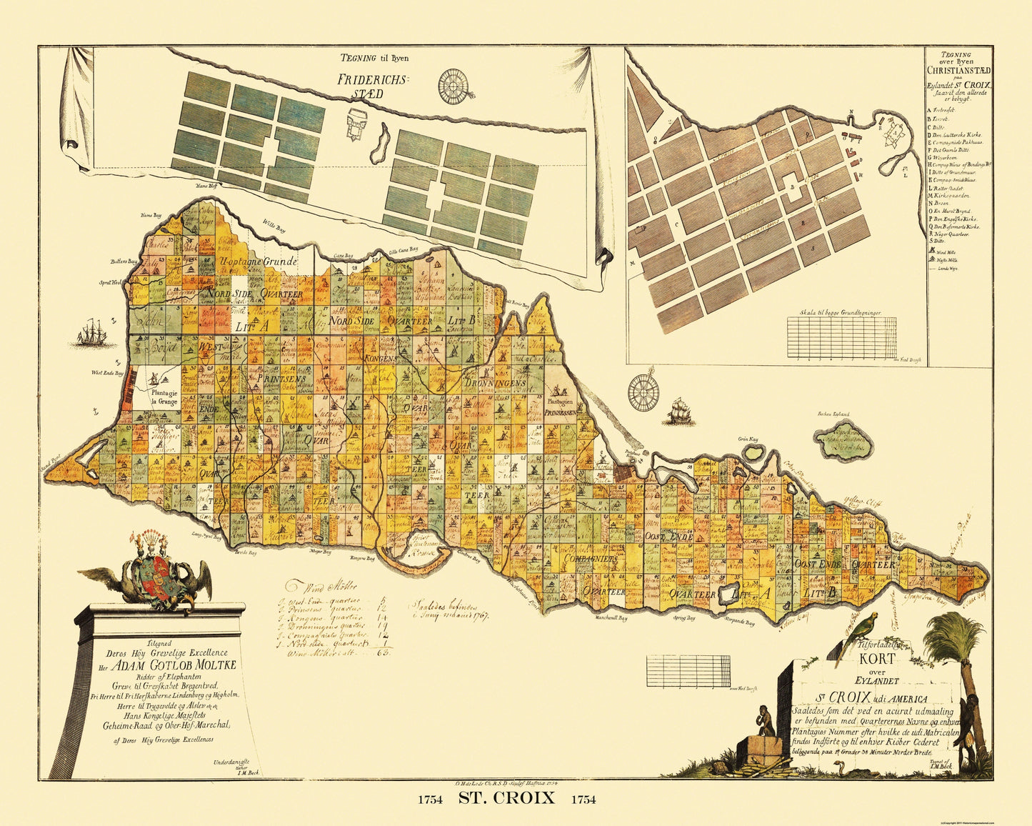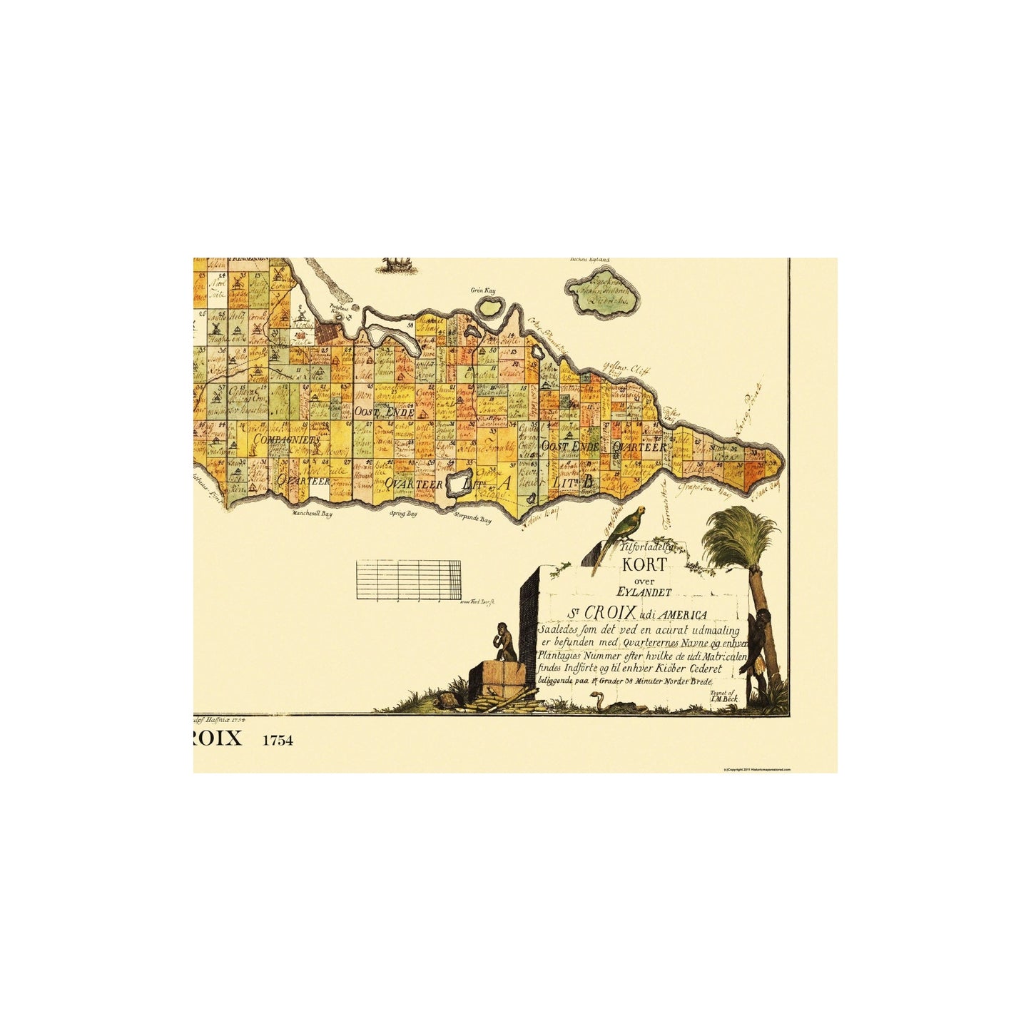 Old Caribbean Map - St. Croix Island, Landowner - 1754 - This is an exquisite full-color Reproduction printed on high-quality gloss paper, art paper or canvas.