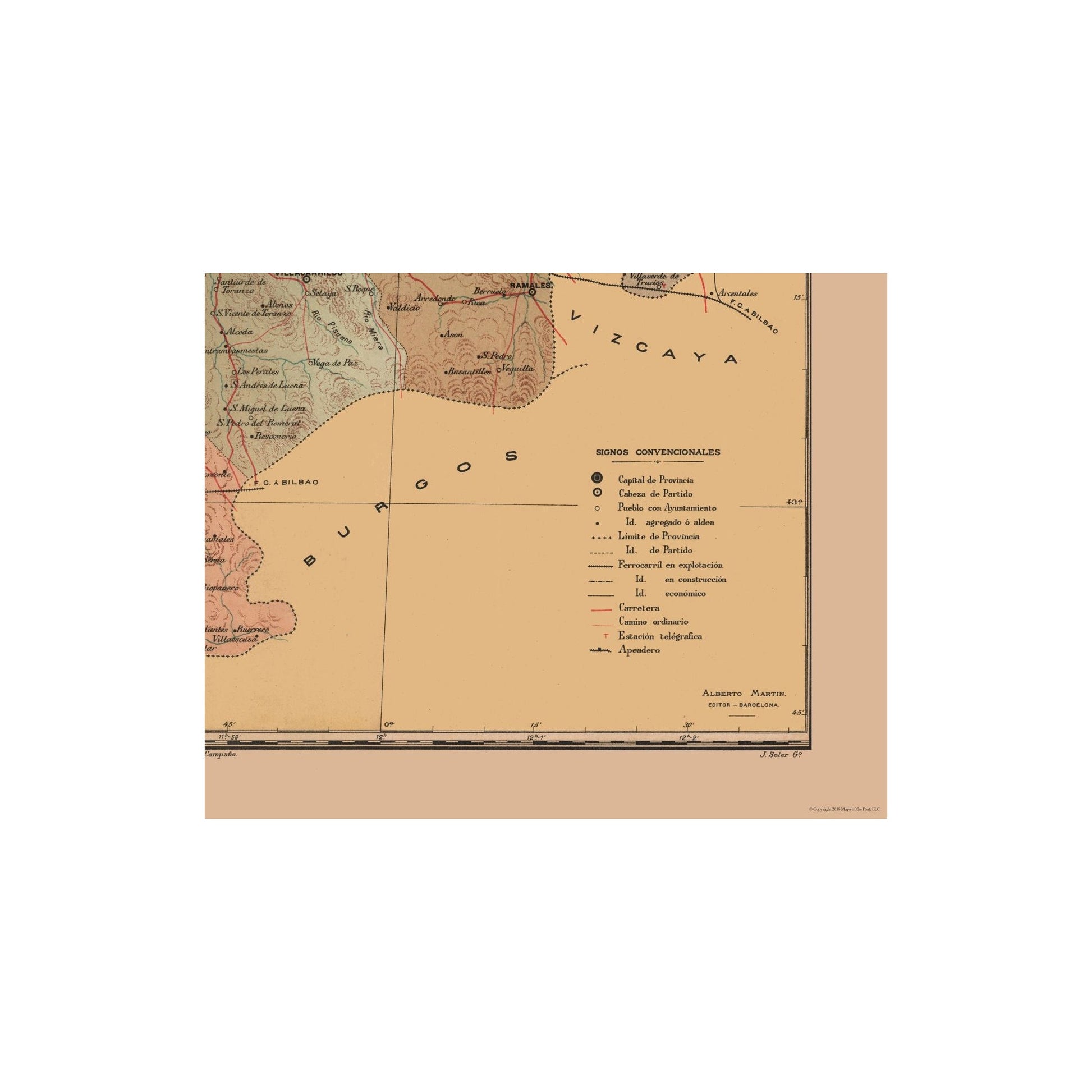 Old International Maps - Spain - Santander 1900 - Martine 1904 - This is an exquisite full-color Reproduction printed on high-quality gloss paper, art paper or canvas.
