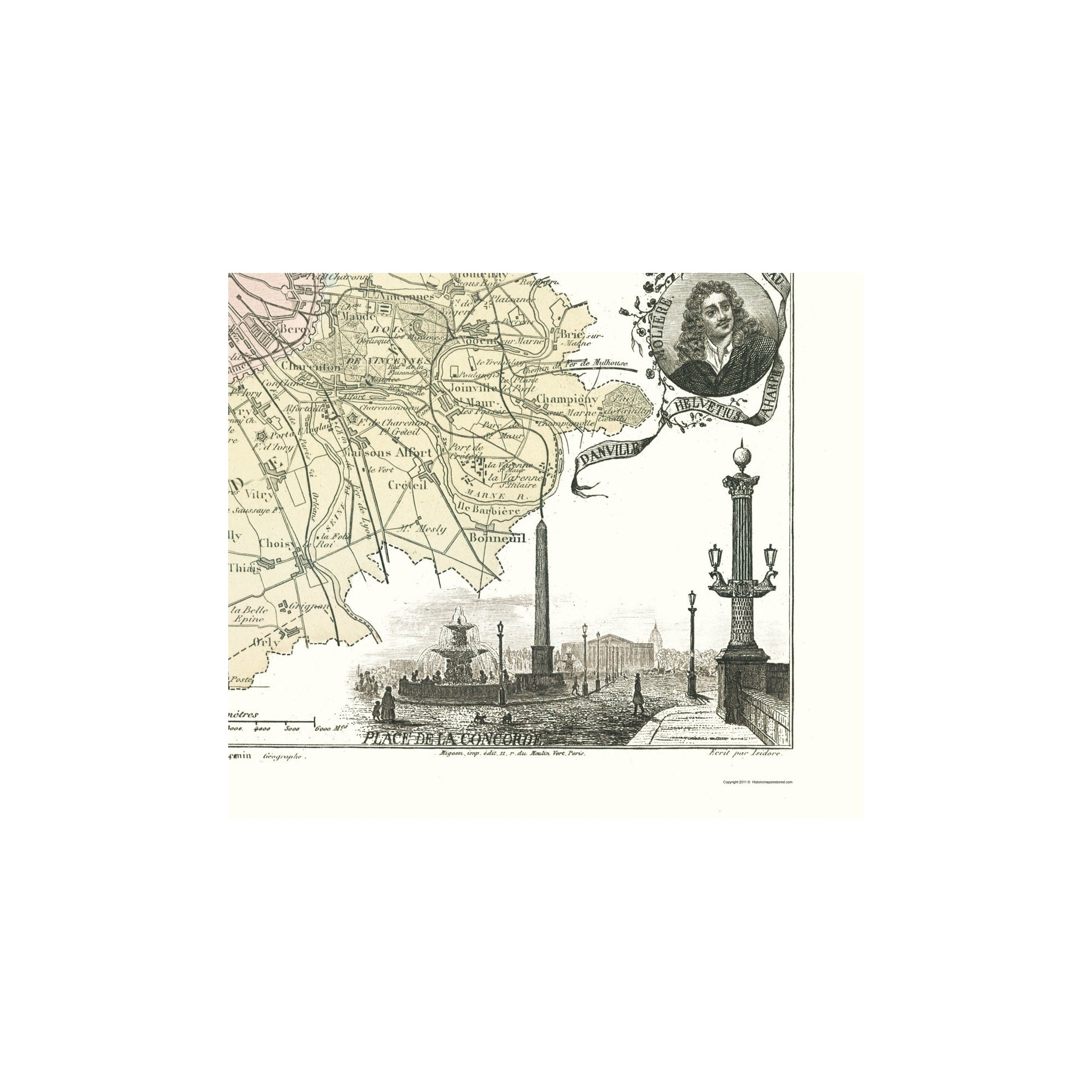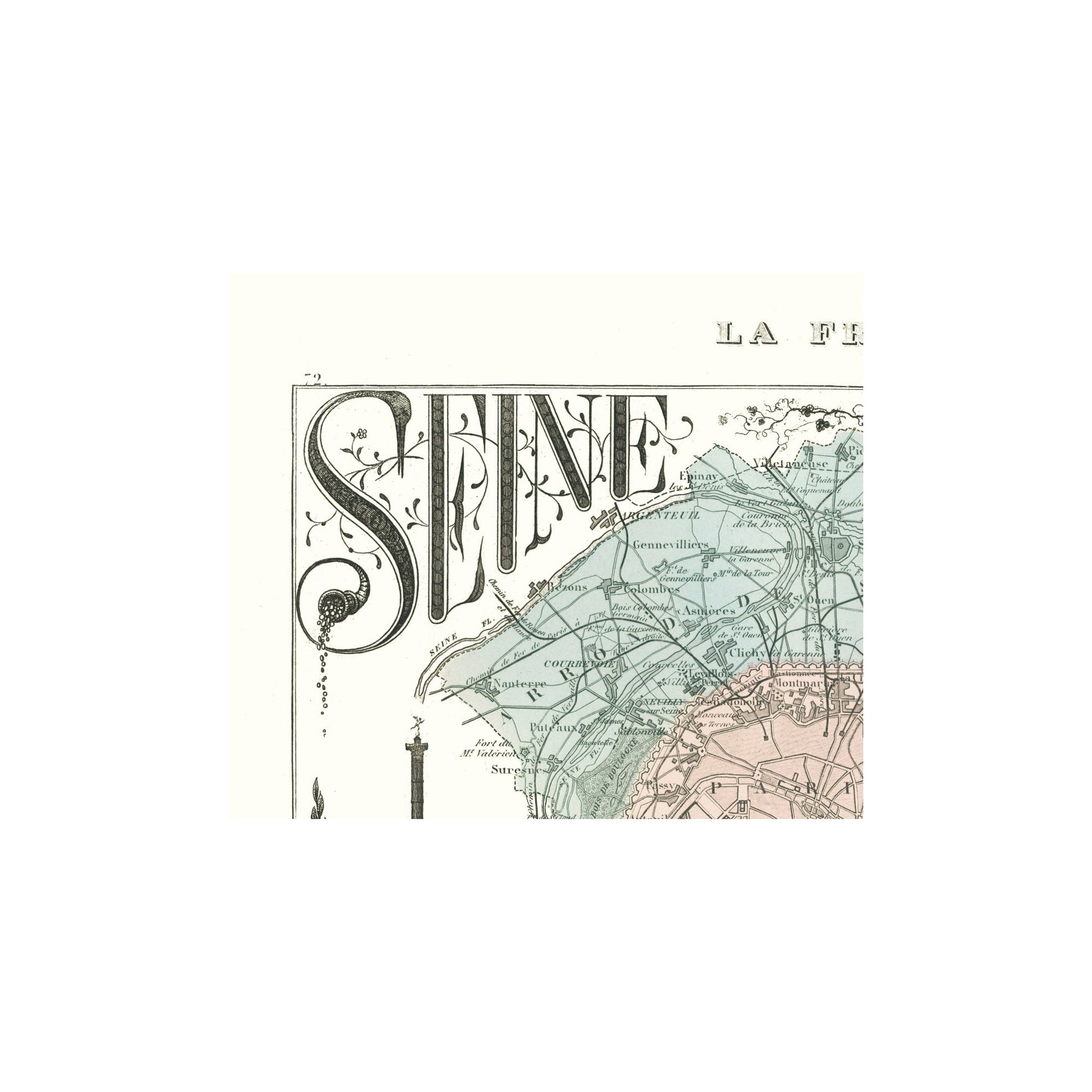 Old France Map - Seine Department - Migeon 1869 - This is an exquisite full-color Reproduction printed on high-quality gloss paper, art paper or canvas.
