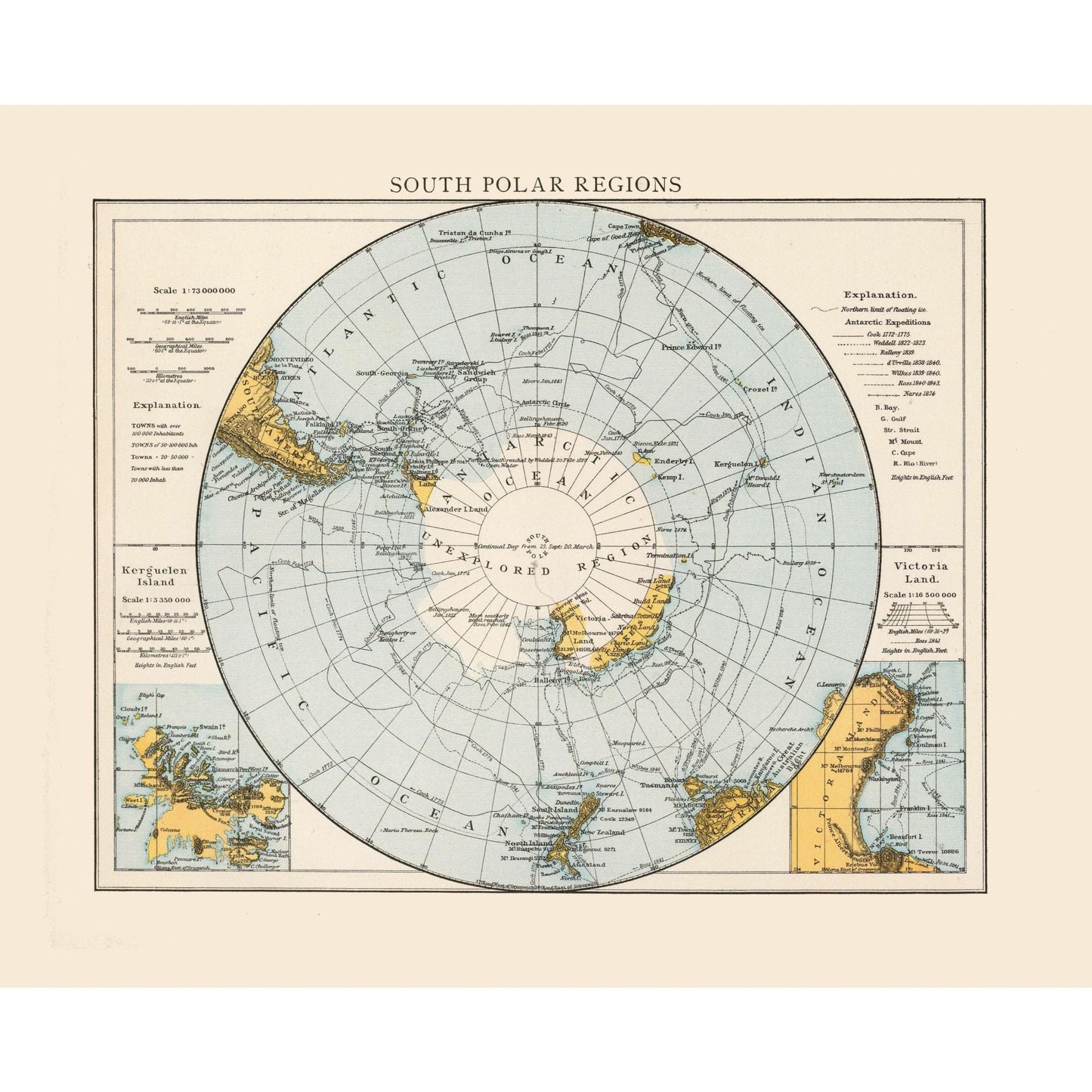 Old International Maps - South Polar Regions - 28.46 x 23 - This is an exquisite full-color Reproduction printed on high-quality gloss paper, art paper or canvas.