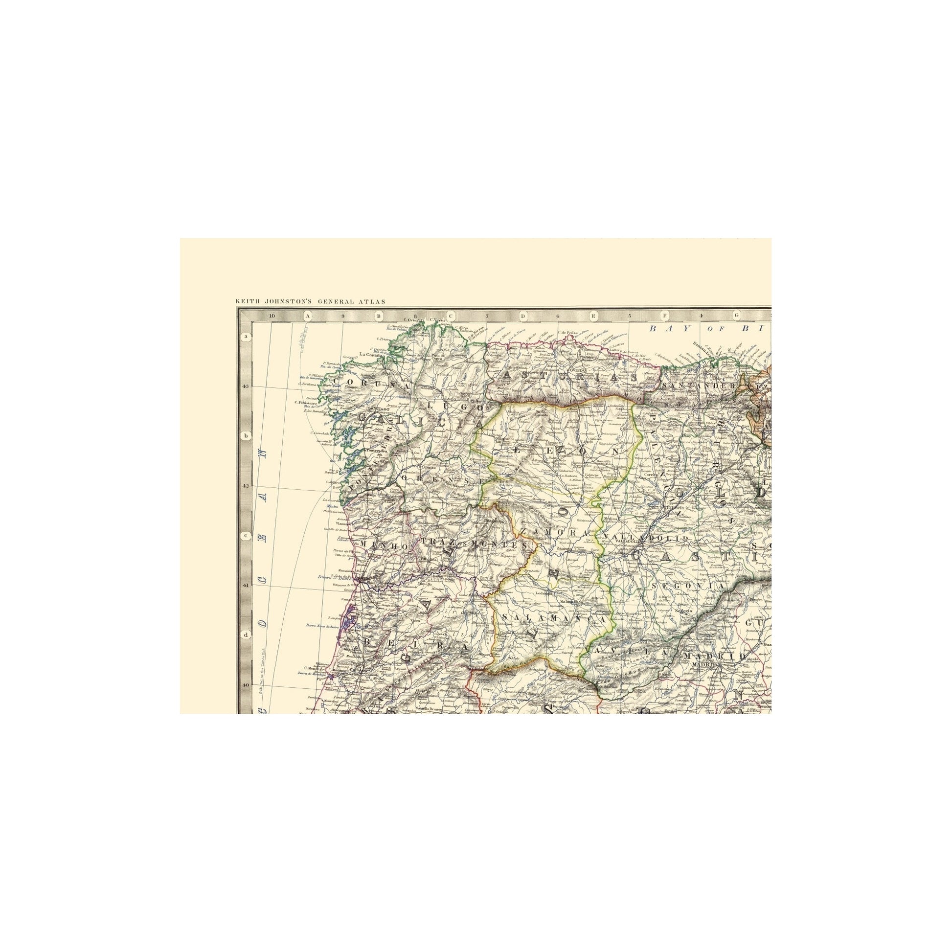 Old Iberian Peninsula Map - Spain and Portugal - Blackwood 1861 - This is an exquisite full-color Reproduction printed on high-quality gloss paper, art paper or canvas.