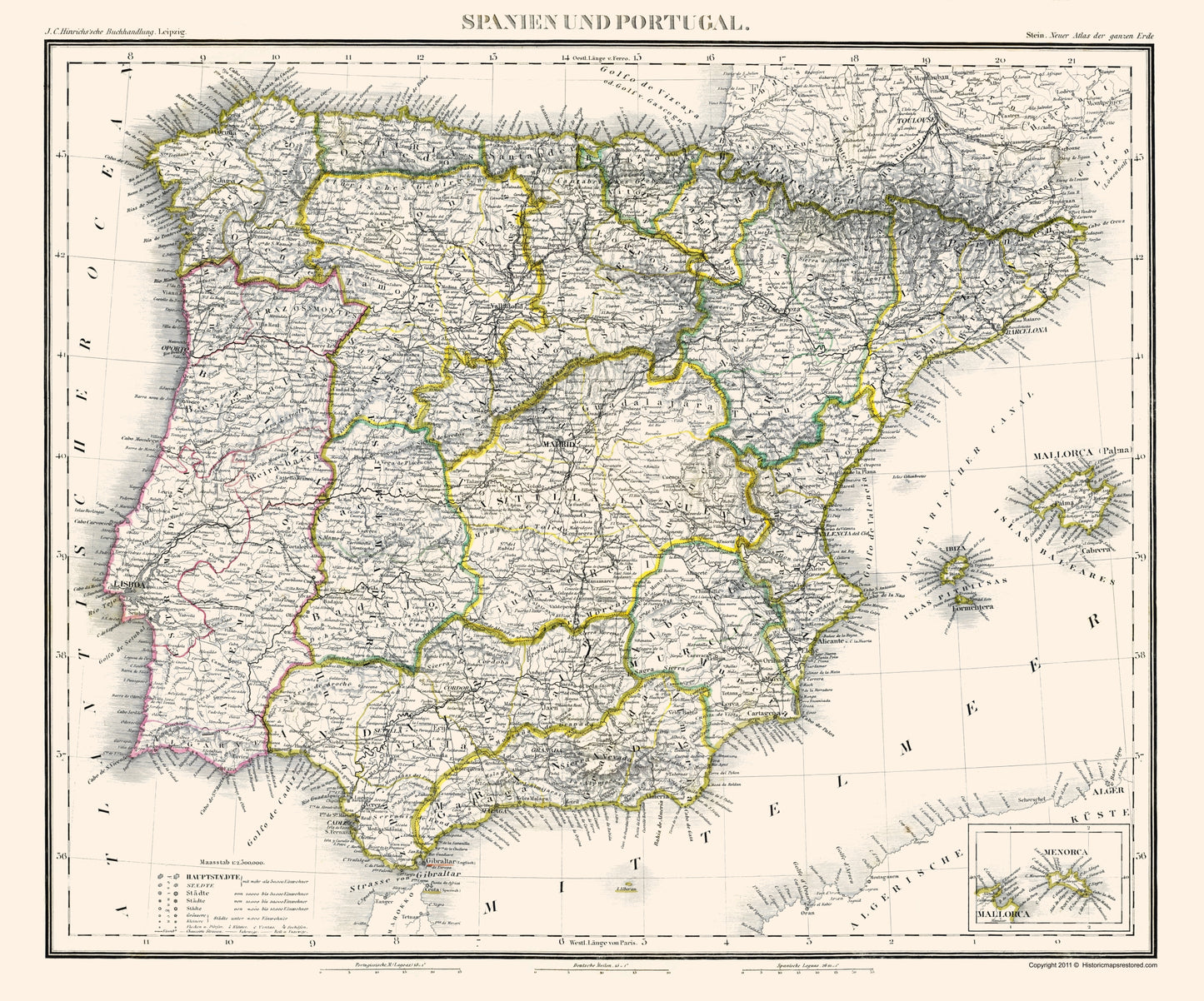Historic Map - Spain Portugal - Stein 1854 - 23 x 27 - Vintage Wall Art