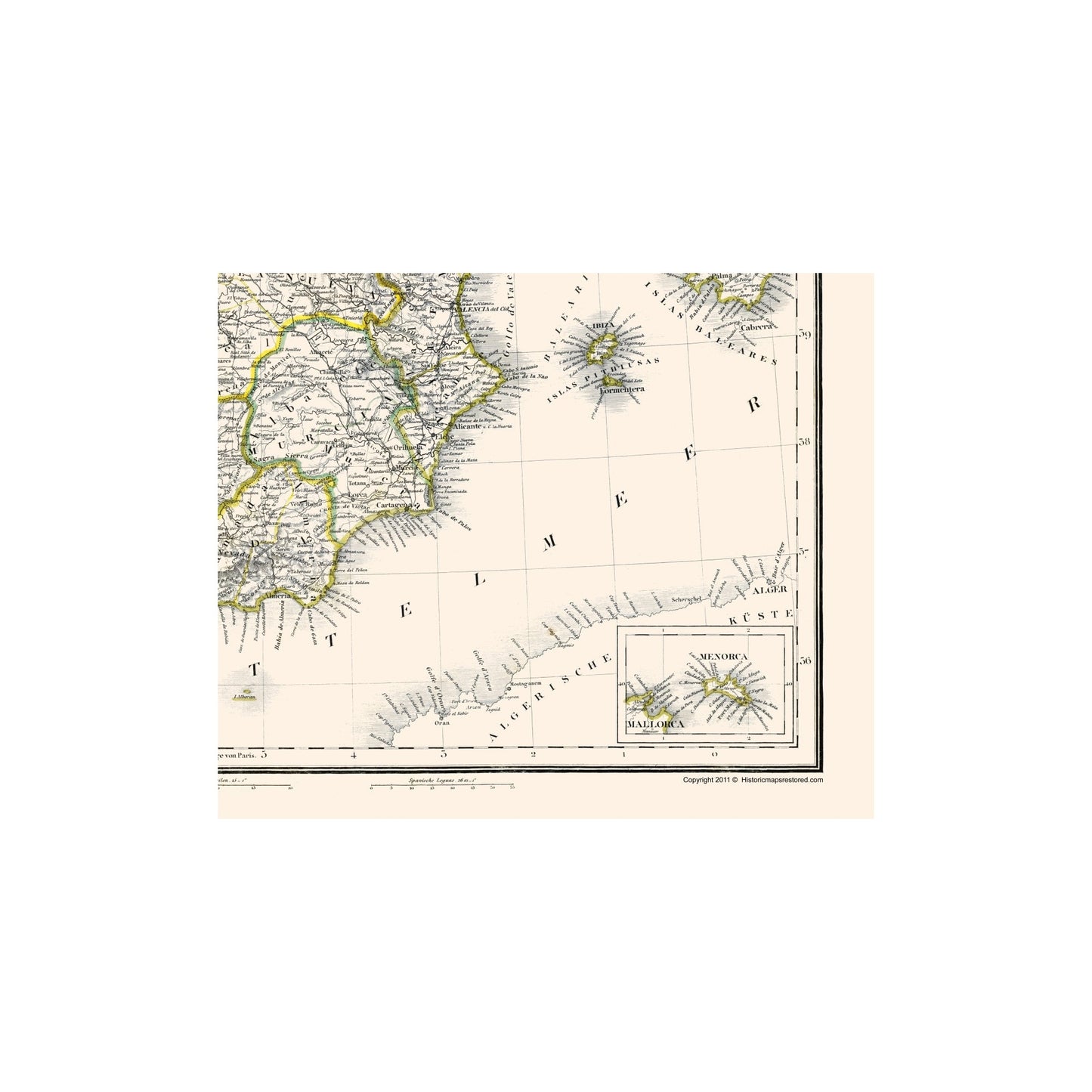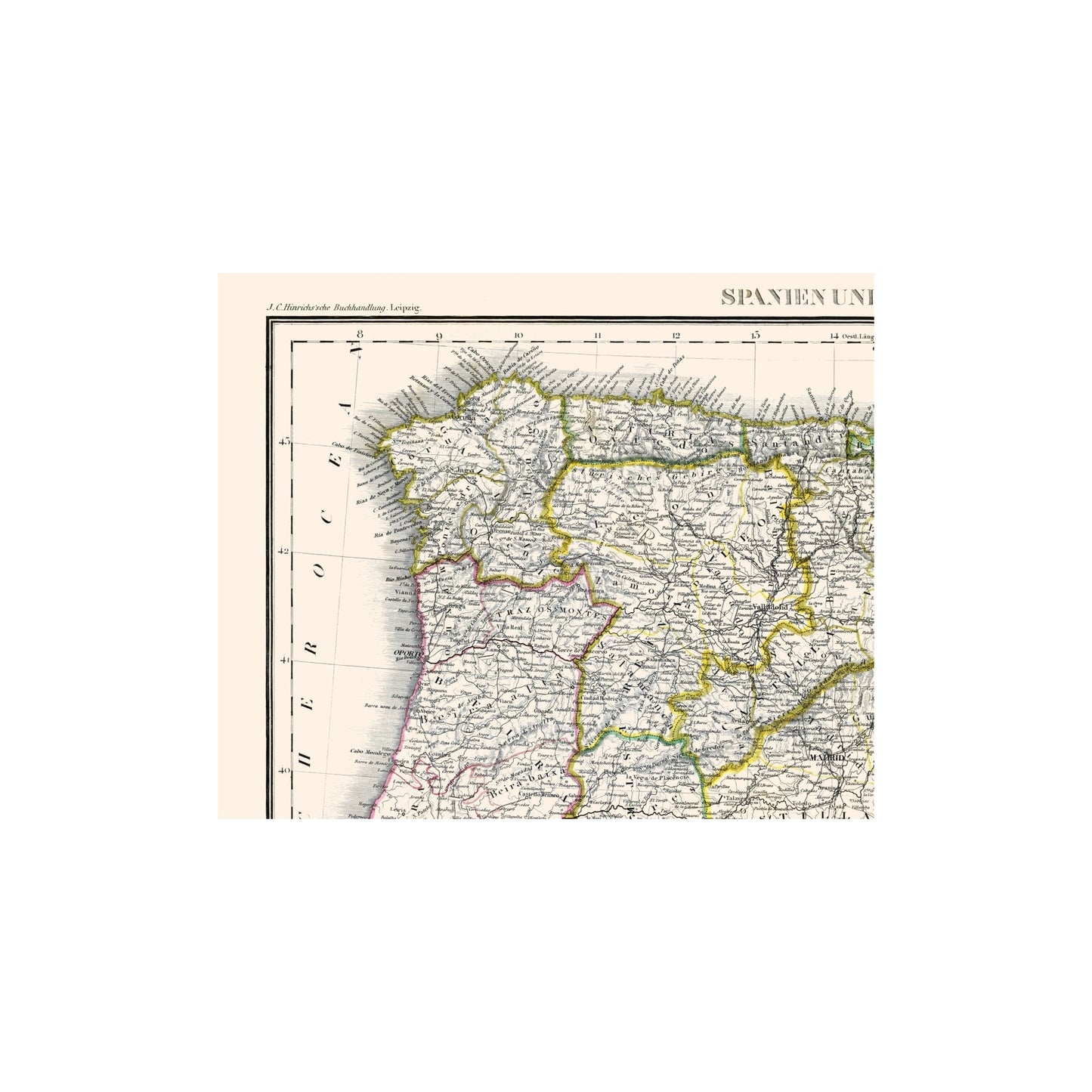 Old Iberian Peninsula Map - Spain, Portugal - Landkartenhandlung 1865 - This is an exquisite full-color Reproduction printed on high-quality gloss paper, art paper or canvas.