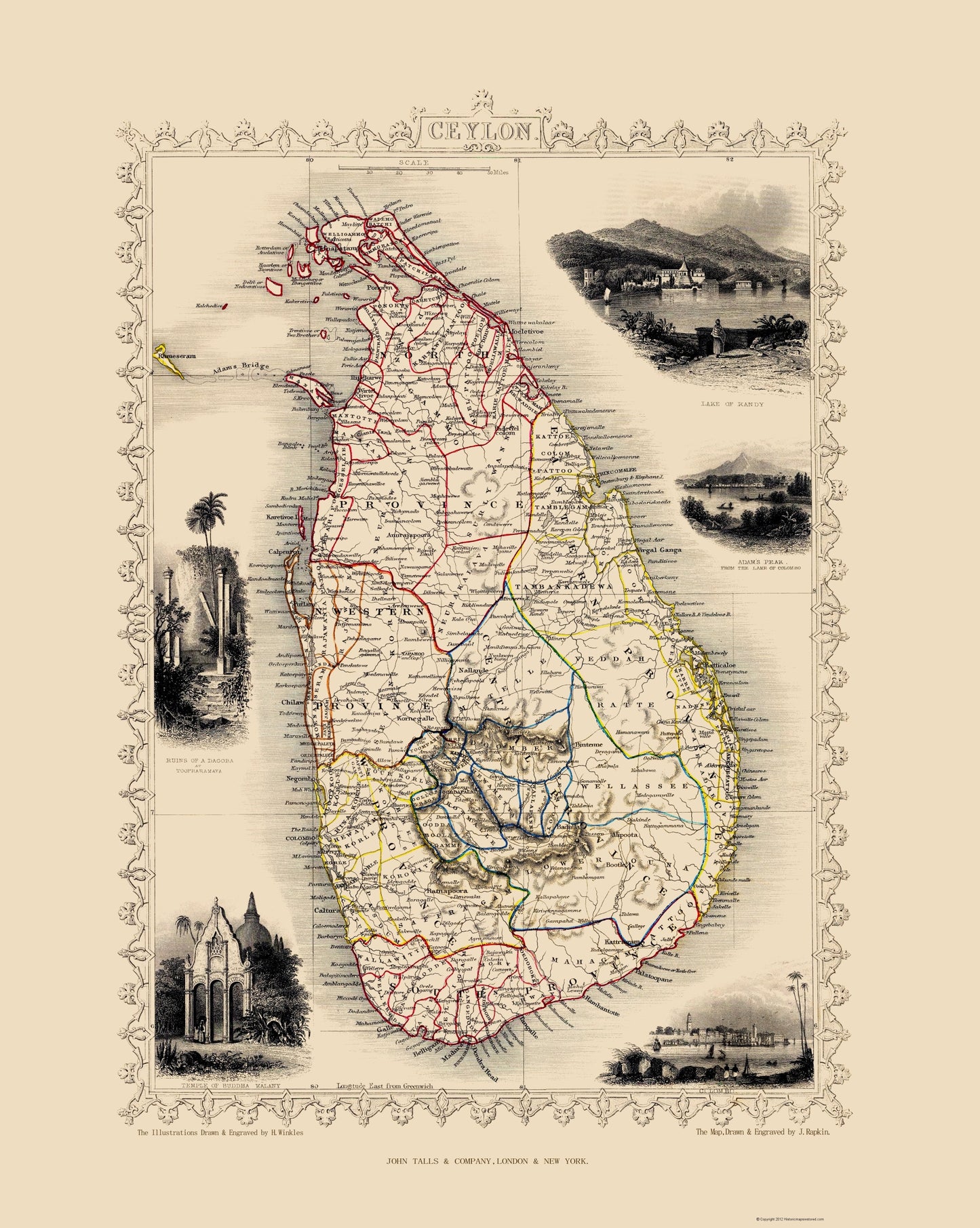 Old Asia Map - Sri Lanka - Tallis 1851 - This is an exquisite full-color Reproduction printed on high-quality gloss paper, art paper or canvas.