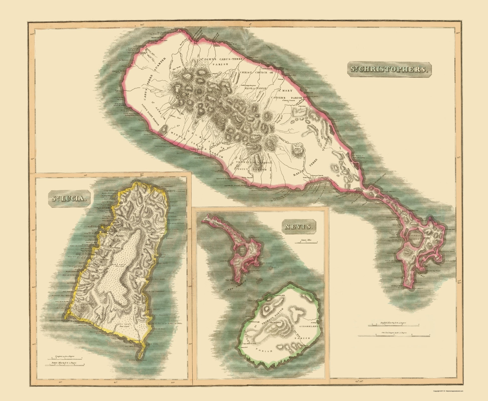 Old Caribbean Map - St Christopher, St Lucia and Nevis - Thomson 1815 - This is an exquisite full-color Reproduction printed on high-quality gloss paper, art paper or canvas.