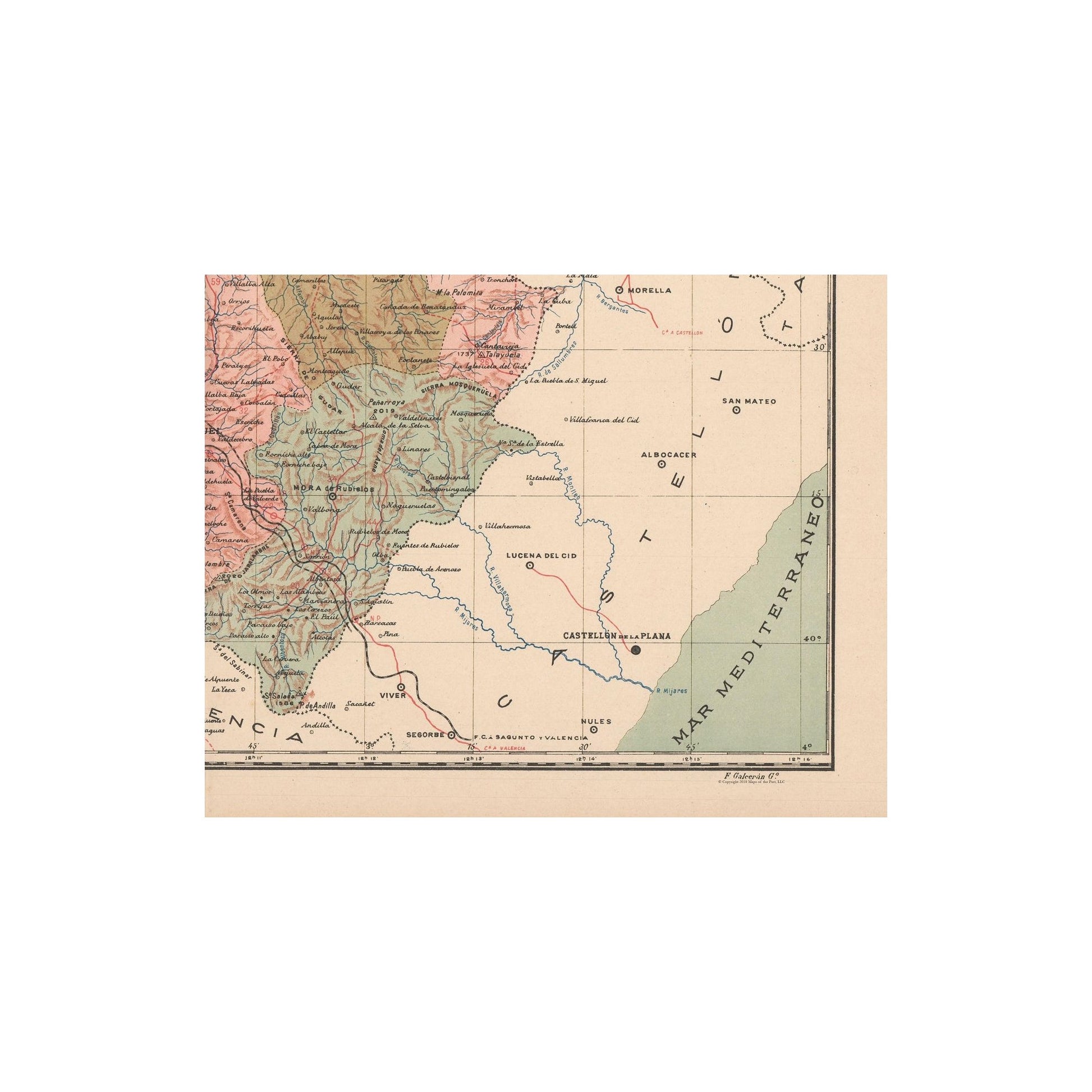 Old International Maps - Teruel - Martin 1911 - This is an exquisite full-color Reproduction printed on high-quality gloss paper, art paper or canvas.