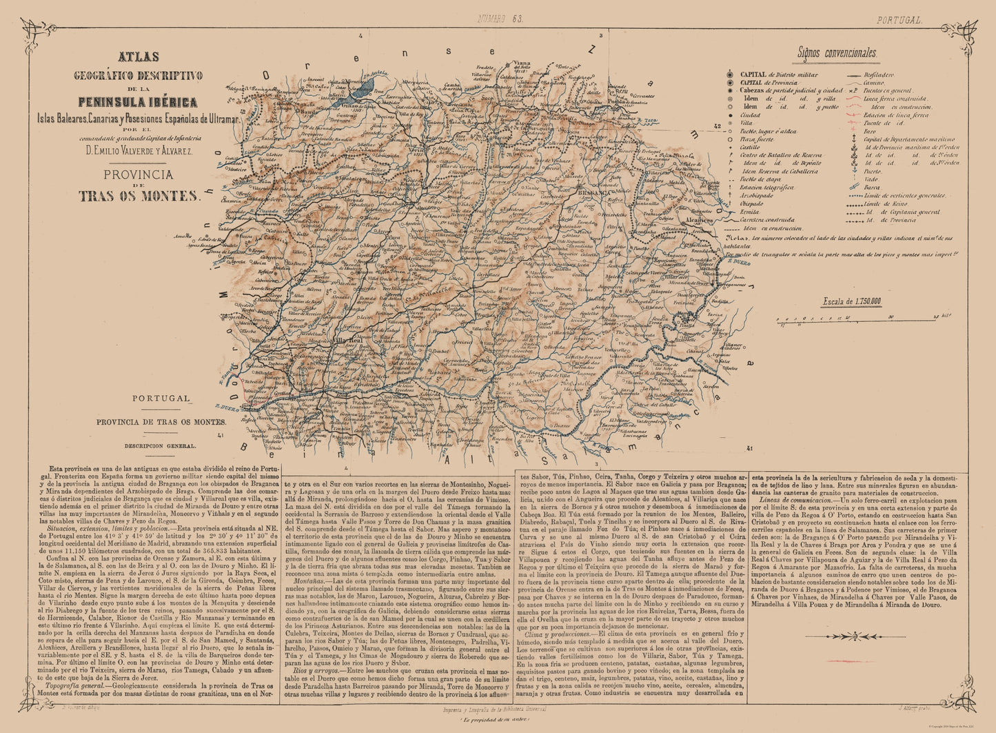 Old International Maps - Tras os Montes Province, Portugal - Valverde's Atlas 1880 - This is an exquisite full-color Reproduction printed on high-quality gloss paper, art paper or canvas.