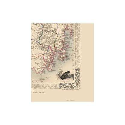 Old Australia Map - Van Diemens Land, Tasmania - Tallis 1851 - This is an exquisite full-color Reproduction printed on high-quality gloss paper, art paper or canvas.
