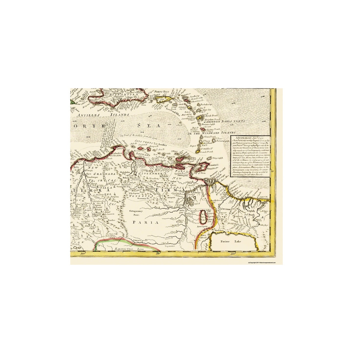 Old Caribbean Map - West Indies or American Islands in North Sea 1740 - This is an exquisite full-color Reproduction printed on high-quality gloss paper, art paper or canvas.