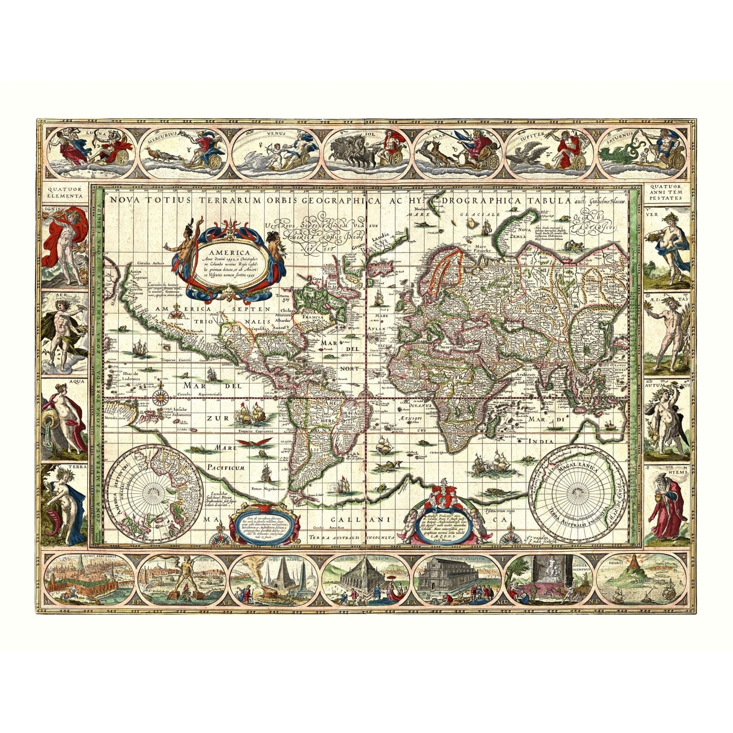Old International Maps - World Map - America 1492-1499 - Bleau - This is an exquisite full-color Reproduction printed on high-quality gloss paper, art paper or canvas.