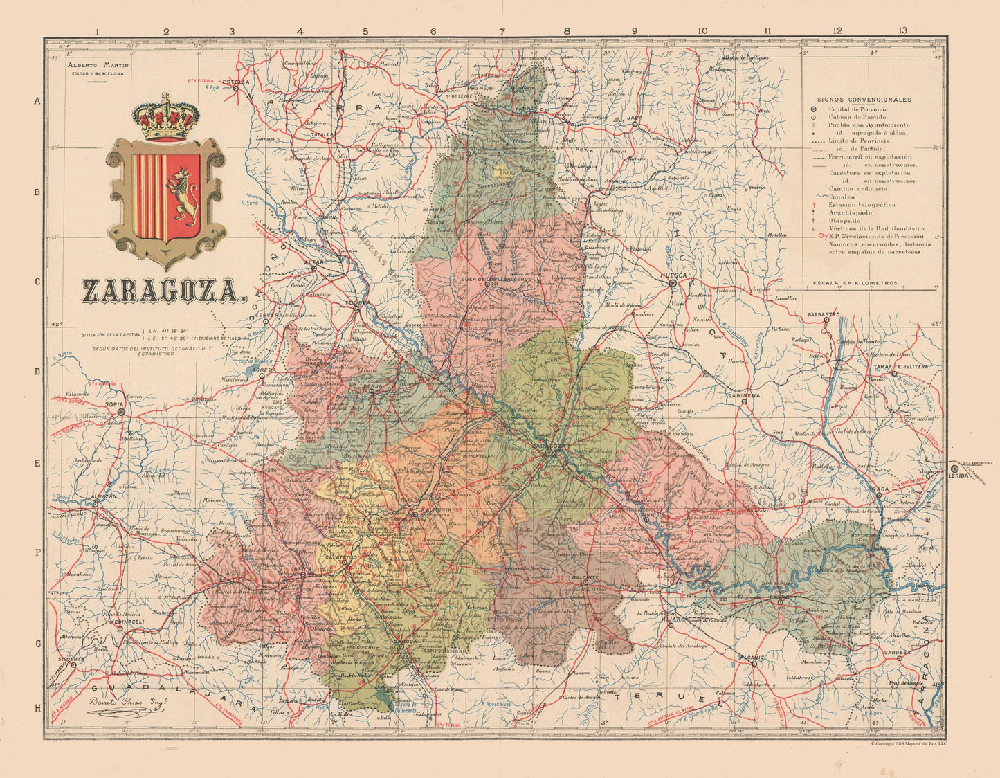 Historic Map - Zaragoza Spain - Martin 1911 - 29.58 x 23 - Vintage Wall Art