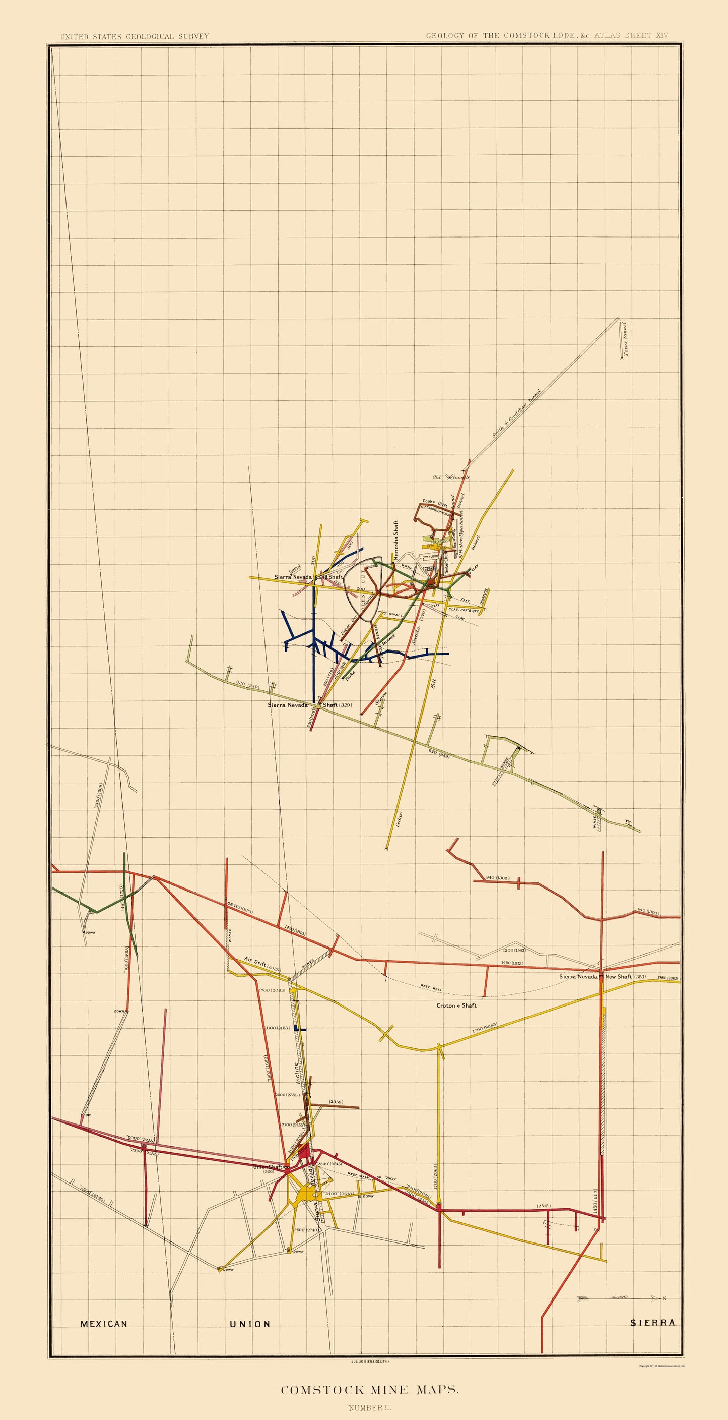 Old Mining Map - Comstock Mine Map Number Two Nevada - Becker 1882 - This is an exquisite full-color Reproduction printed on high-quality gloss paper, art paper or canvas.
